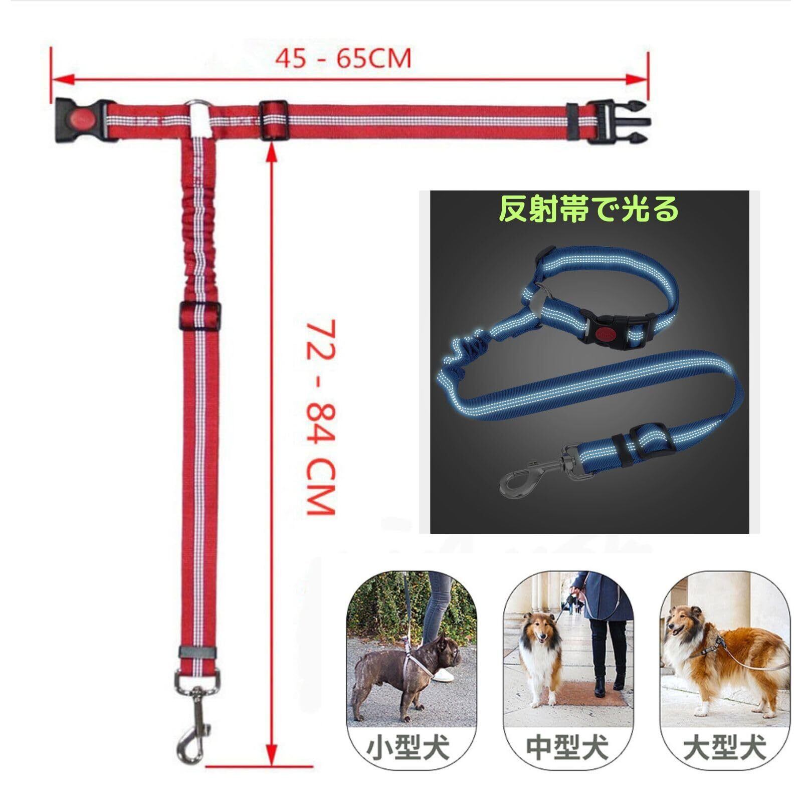 geneX 犬 猫 シートベルト 車 シート リード 車専用リード 長さ調整可能 簡単装着 伸縮性 反射帯 (ブルー)