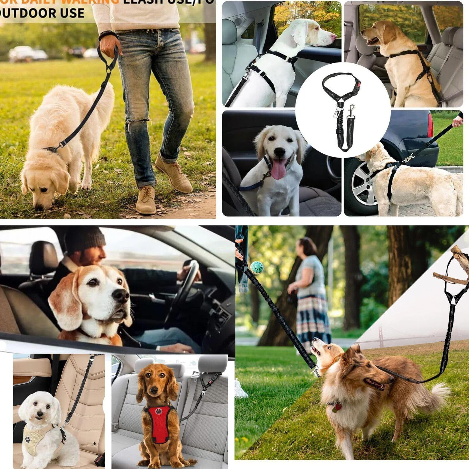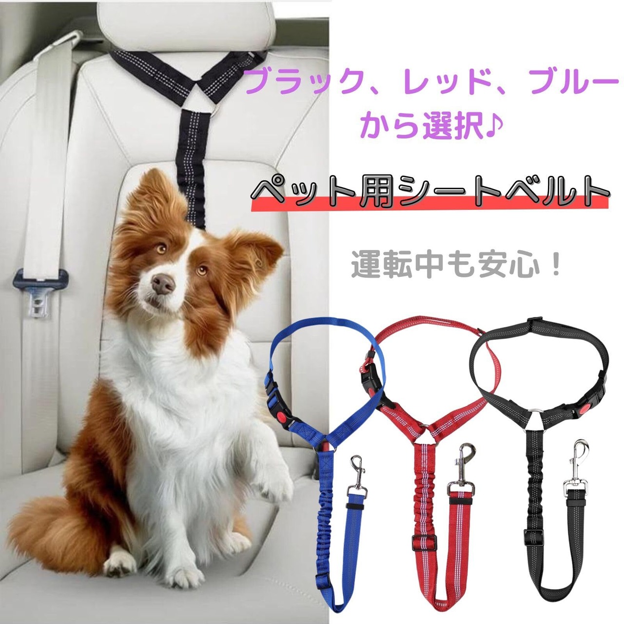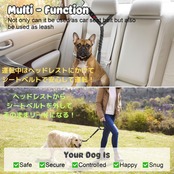 【こだわりの設計】車内でのペットの安全を確保する、車両用シートベルトです。バックル差し込みタイプを筆頭に、ヘッドレストへの引っ掛け、散歩用リードと幅広い使い方が可能です。中間部には伸縮性のゴムを採用し、衝撃吸収とワンちゃんへのストレス軽減が可能です。