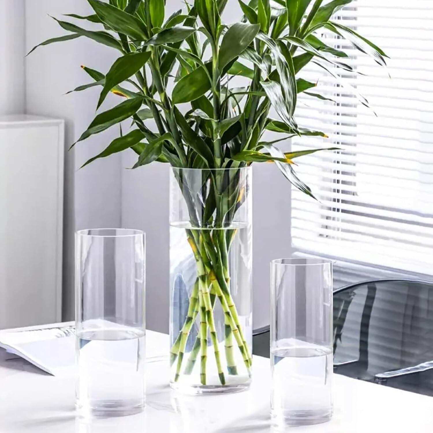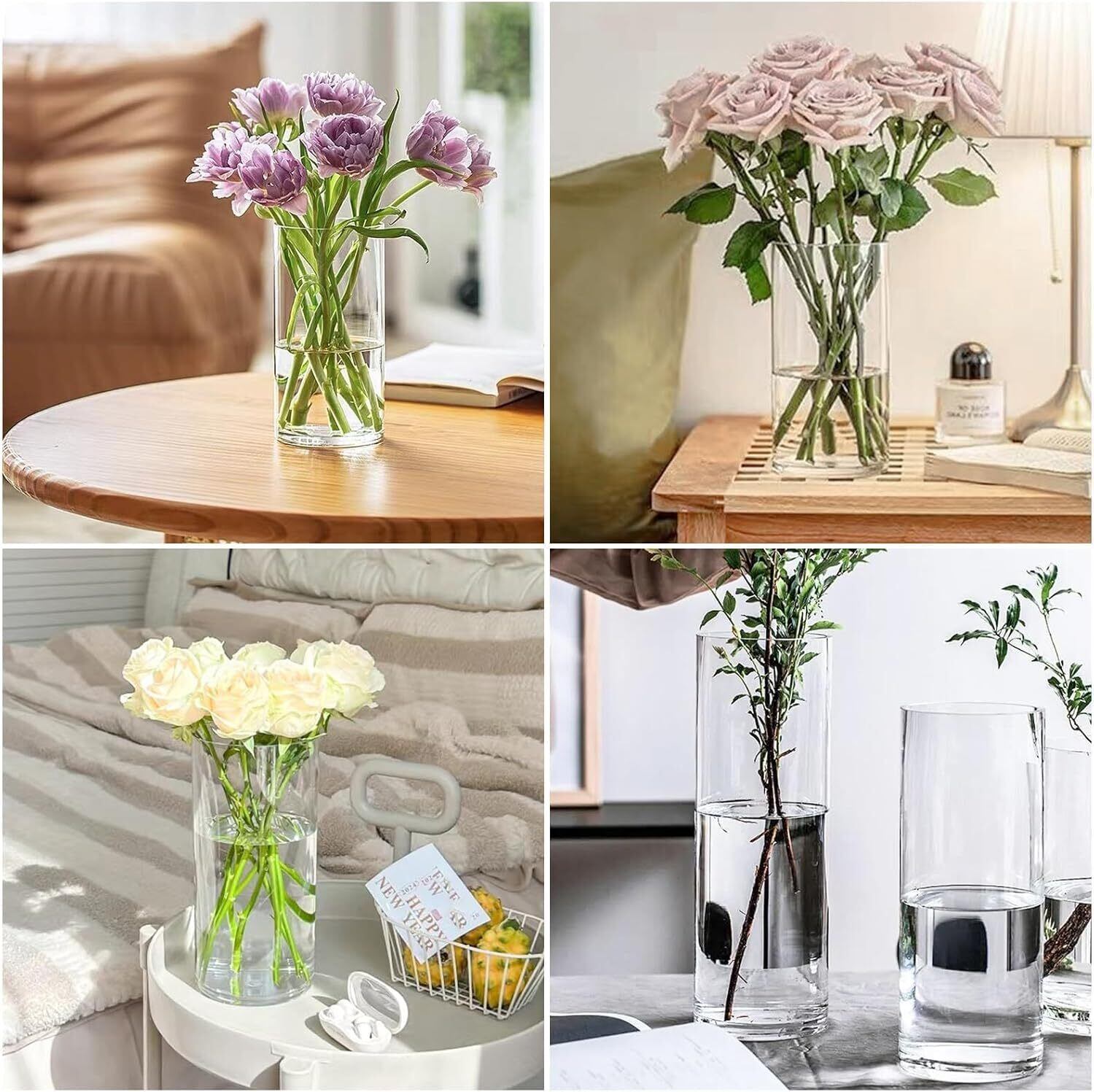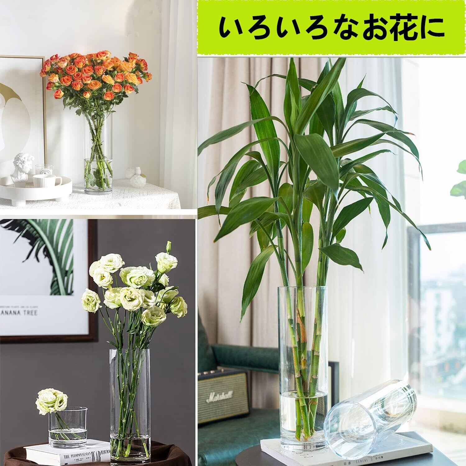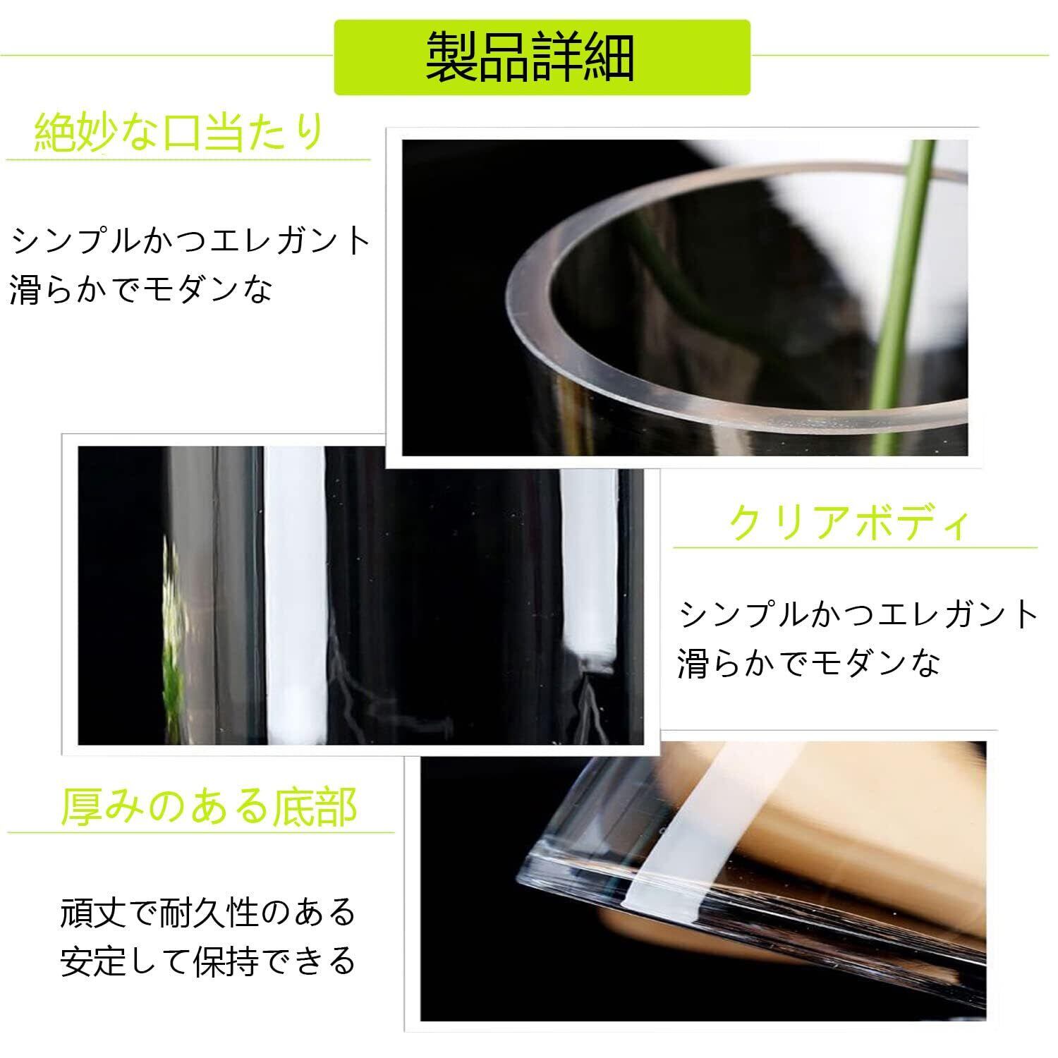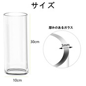 サイズ: 高さ:30cm 直径:10cm このサイズのシリンダーベースは、50〜70cmのブーケ、つる性の花、茎、葉、枝に適しています。例えば、桜、バラ、ユリなどは花瓶にちょうど収まる長さです。