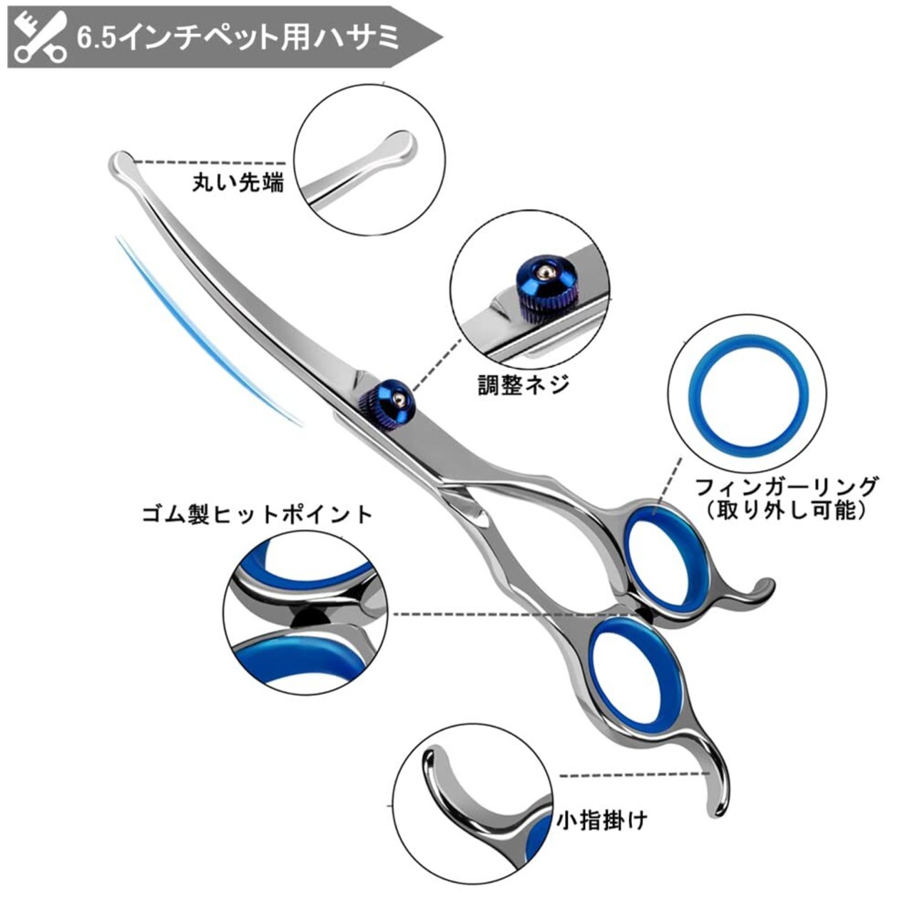 Dosi 犬猫 カーブシザー トリミングシザー 曲がった刃 下向き&上向き兼用 丸い先端 安全性高い ペット用はさみ 中・小型犬 猫美容用 (6.69 インチ)