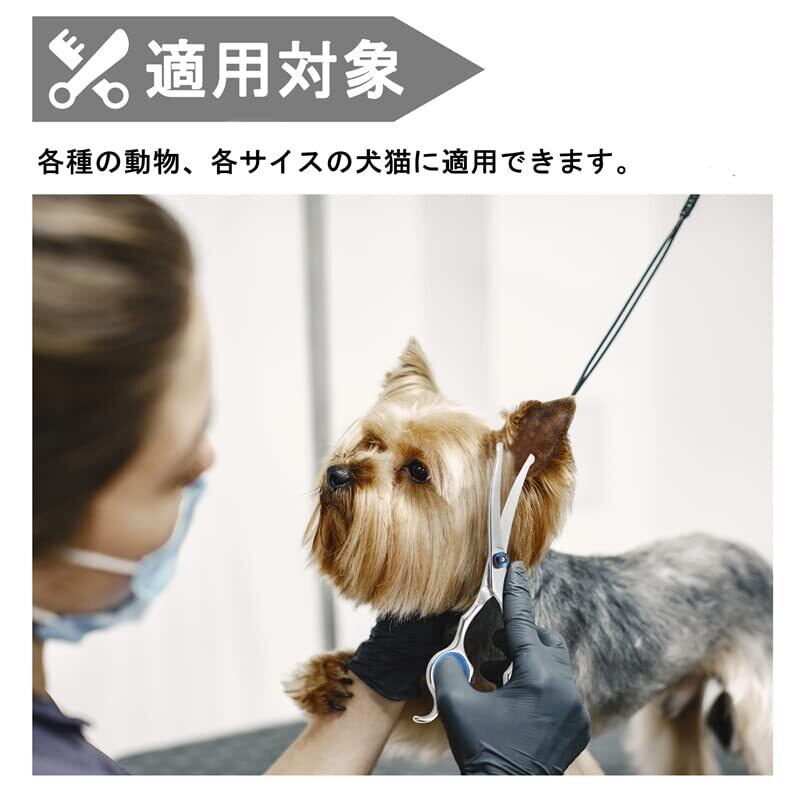 【下向き&上向き兼用はさみ】上向きはさみはペットの目、耳、足と尻周りの毛を細かくて調整できます。下向きはさみは顔、頭、ペット自身の弧度に合わせて可愛い造形を作れます。