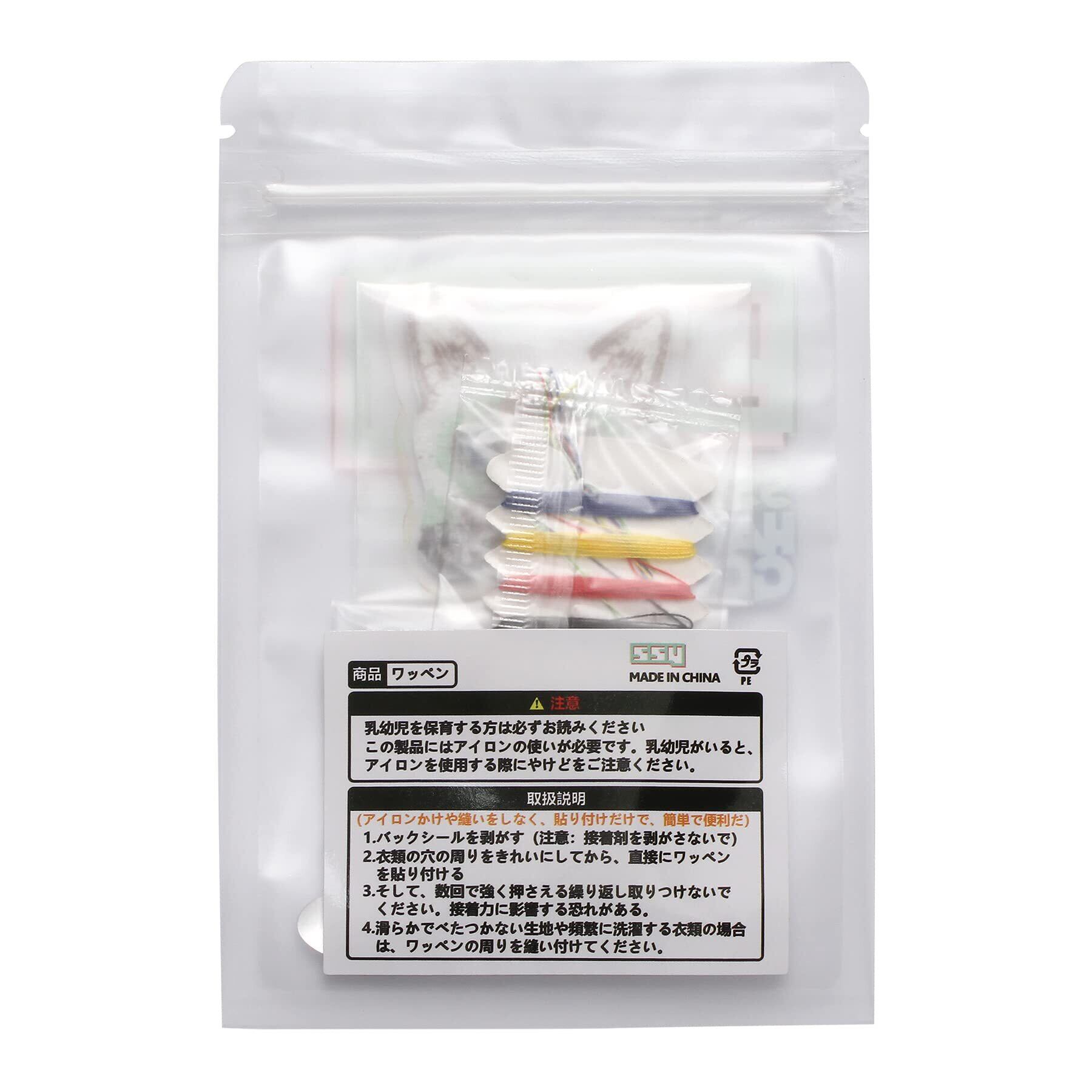 シールタイプの使い方:のりシールタイプので、完全に湿ったり、乾かないものに貼り付けないでください。のりシールで紙製品や皮革製品に貼り付けている場合は、剥がすと、取り付け面を傷つける可能性があります。長期間の貼り付けにより、衣類などの製品にのり残りする恐れがあります。 アイロン接着タイプの使い方:平らなアイロン台と白いあて布を準備してください。(あて布はワッペンにのせて、アイロンの高温によるワッペンと衣類への傷みを防ぎます。)1.ワッペンをつけたい位置に置いてください。2.あて布をのせて、アイロン温度をドライ中温に設定して、約20~30秒間しっかりと押さえてください。3.また、より強力な接着ができるために、反対側もアイロンかけをしてください。(完全に冷めるまでは動かさないでください。)※厚い生地や幅広い織物に貼り付けた場合は、適切にアイロンかけ時間の拡張とより強いプレスが必要になります。縫い付けをおすすめ:長時間に使いたい場合,頻繁に洗濯する場合,しっかり付けたい場合。 使用上のご注意:1洗濯の場合は水洗いしてください。2塩素系漂白剤で洗濯しないで、ドライクリーニングも不可。3アクリル合成繊維など熱に弱い布地に貼り付ける場合は、アイロンがけに特に温度をご注意ください。 4防水加工生地、撥水加工生地、湿ったり、乾かない製品に貼り付けないでください。5凹凸感ある織物には、接着力が弱いので、縫い付けをお勧めます。. 注意:乳幼児を保育する方は必ずお読みください。この製品にはアイロンの使いが必要です。乳幼児がいると、アイロンを使用する際にやけどをご注意ください。 手作業による測定のため多少の誤差を許容してください。照明効果やモニターの明るさ/コントラスト設定などにより、商品の色が写真と多少異なる場合がありますのでご注意ください。ご理解ください。