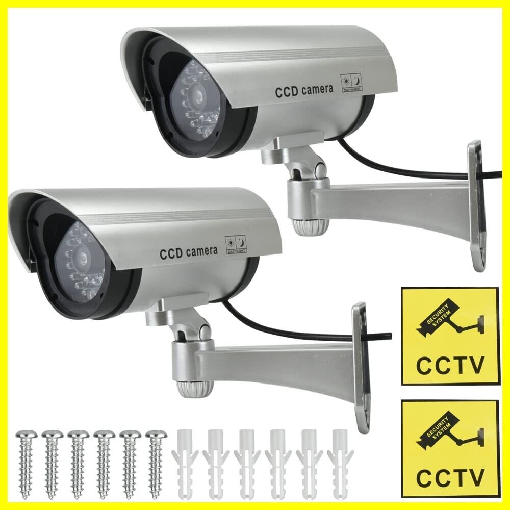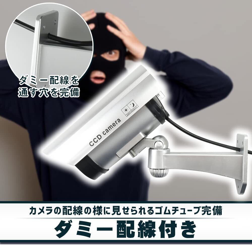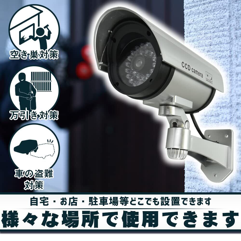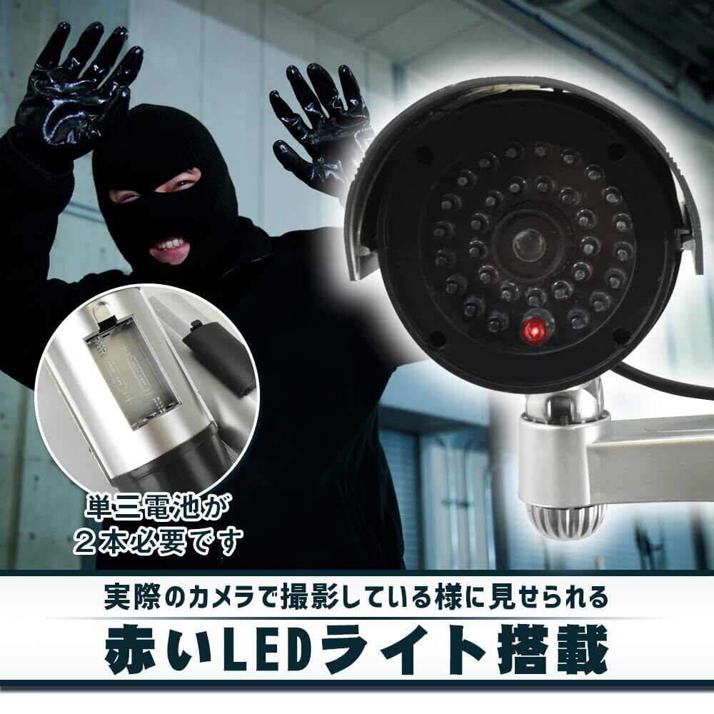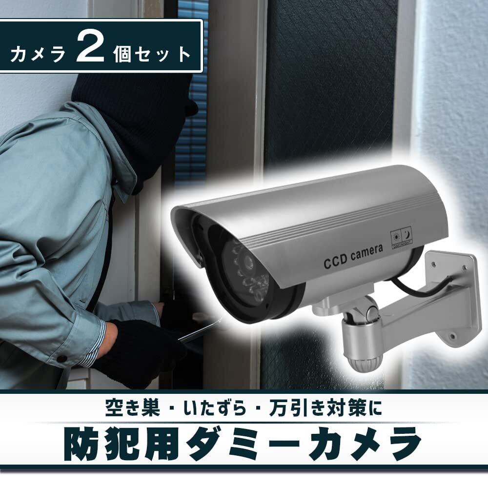 防犯カメラ ダミー 2個 監視カメラ 防犯対策 注意喚起 いたずら防止 倉庫 玄関 ガレージ LEDライト点滅