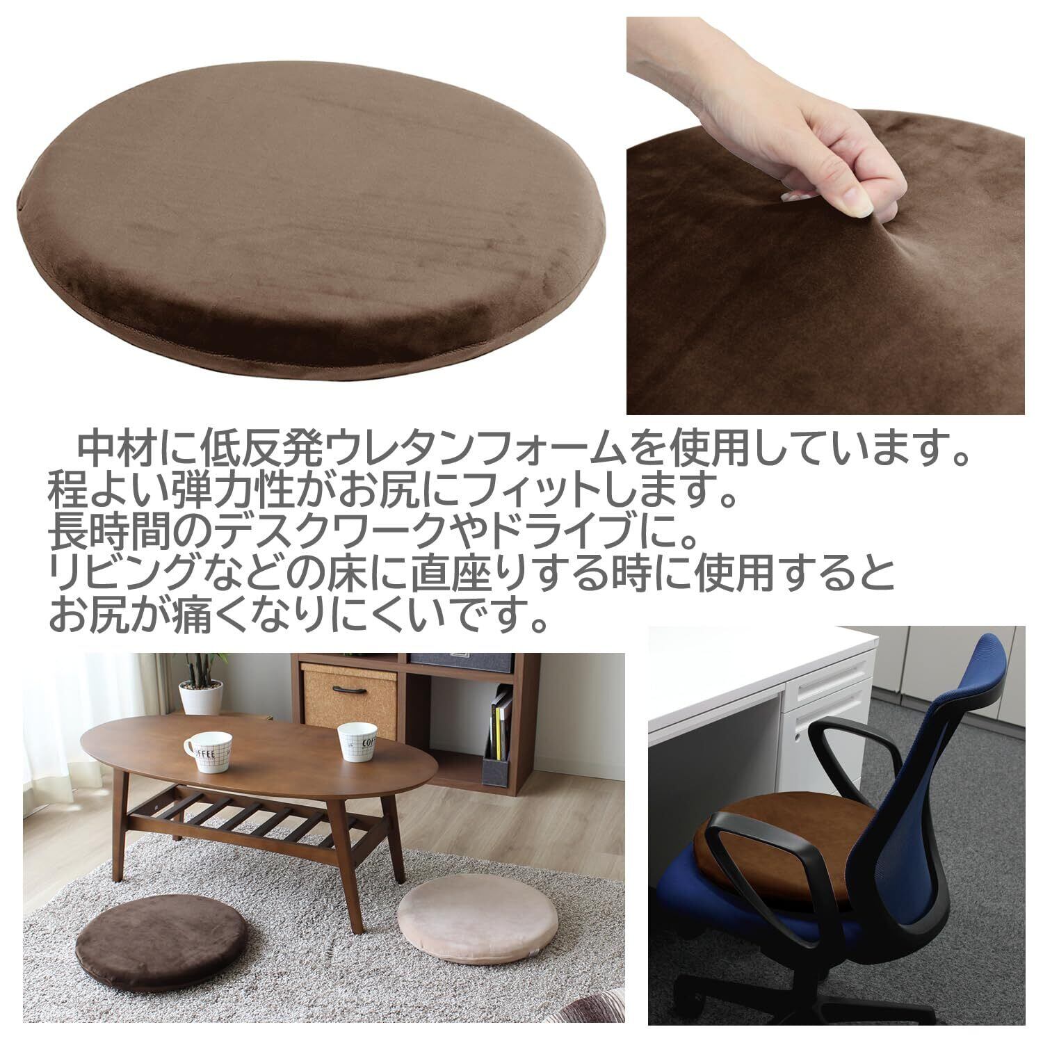 メリーナイト クッション 低反発丸形クッション 「もちとろん」 ブラウン 直径約40㎝ チェアパッド シート ウレタンリビング 椅子用 座布団 在宅勤務 自宅 オフィス デスクワーク ドライブ MTR1002-93