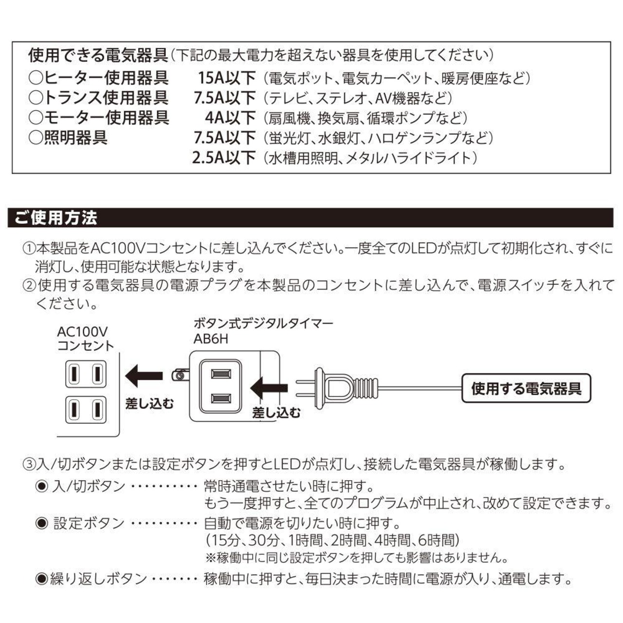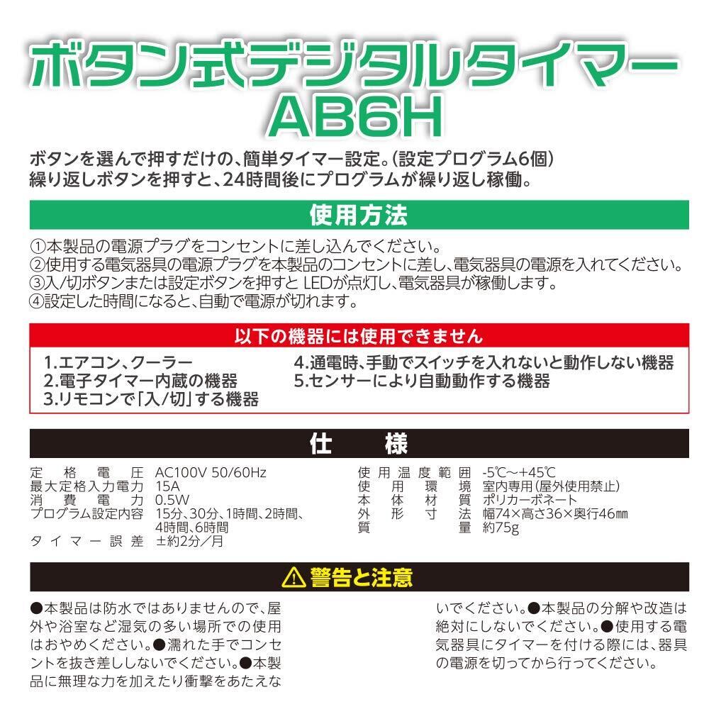 オーム電機 ボタン式デジタルタイマー タイマーコンセント AB6H HS-AB6H 04-8883