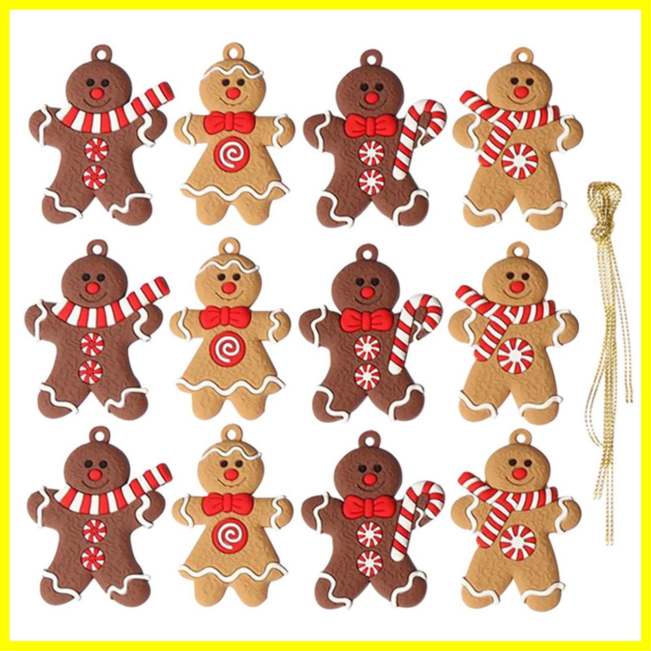 クリスマス感たっぷりのジンジャーブレッドマンのペンダントが12個入っています。ゴールドの紐も付属しております。