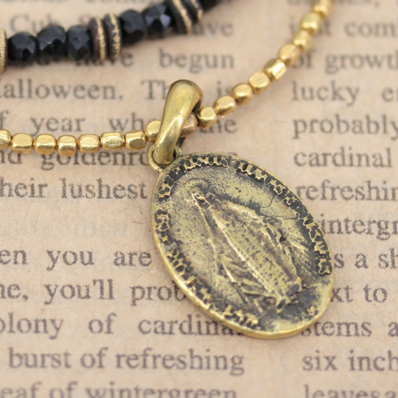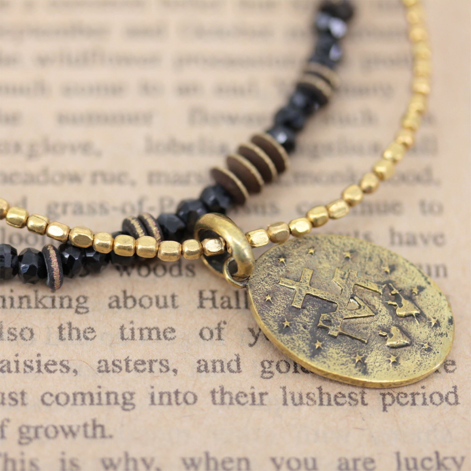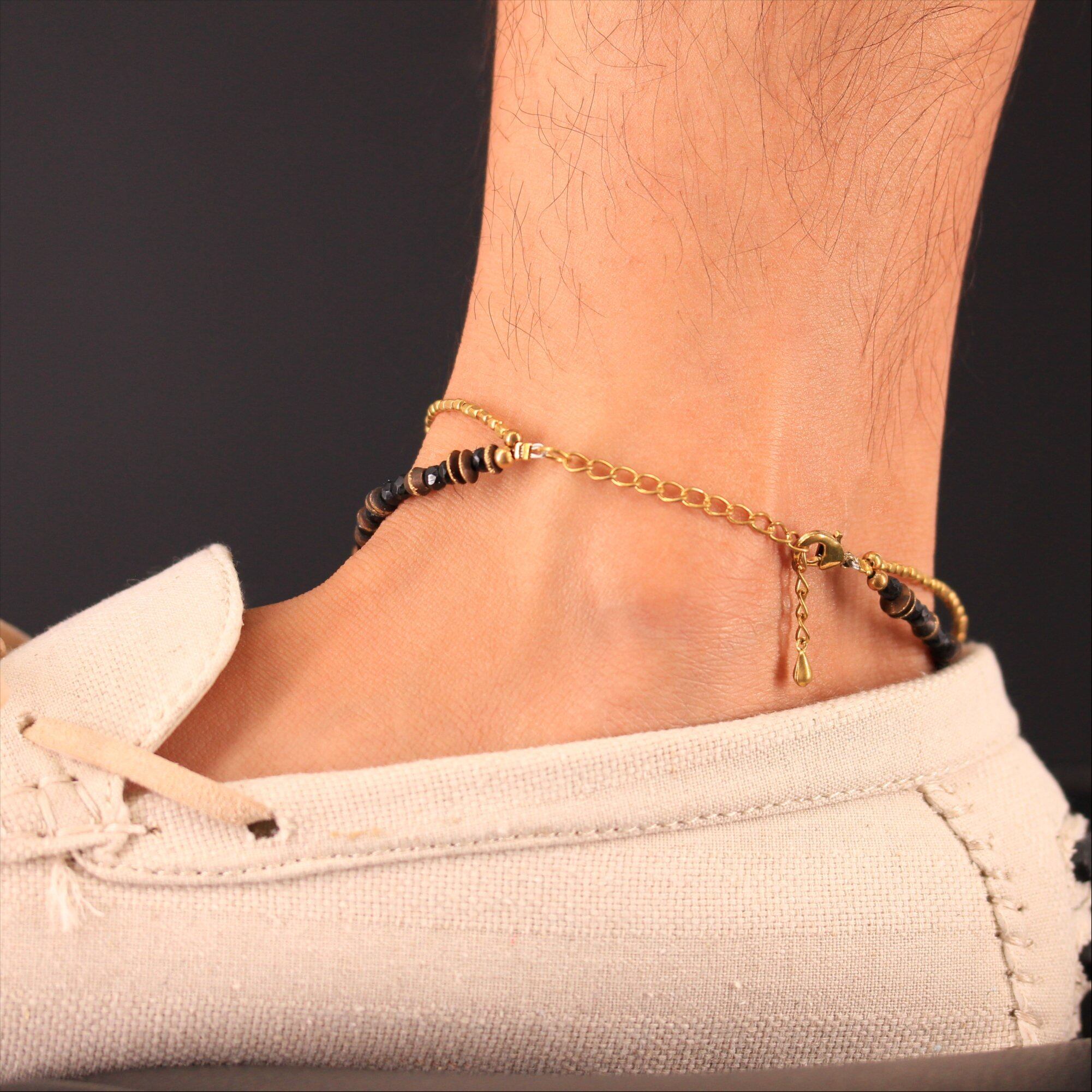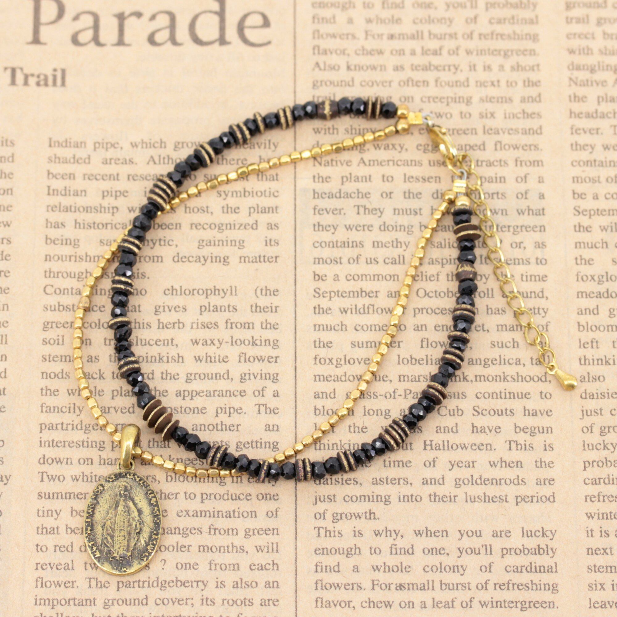 ocean アンクレット ブラック スピネル クロス マリア メダイ コイン ゴールド ブラス 足首 ミサンガ バングルメンズ