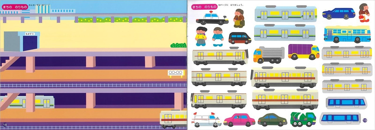 街の中や高速道路で見かける身近な車、働く車、電車、にちょっぴり船や飛行機まで登場する乗り物好きキッズにぴったりなシールブック。