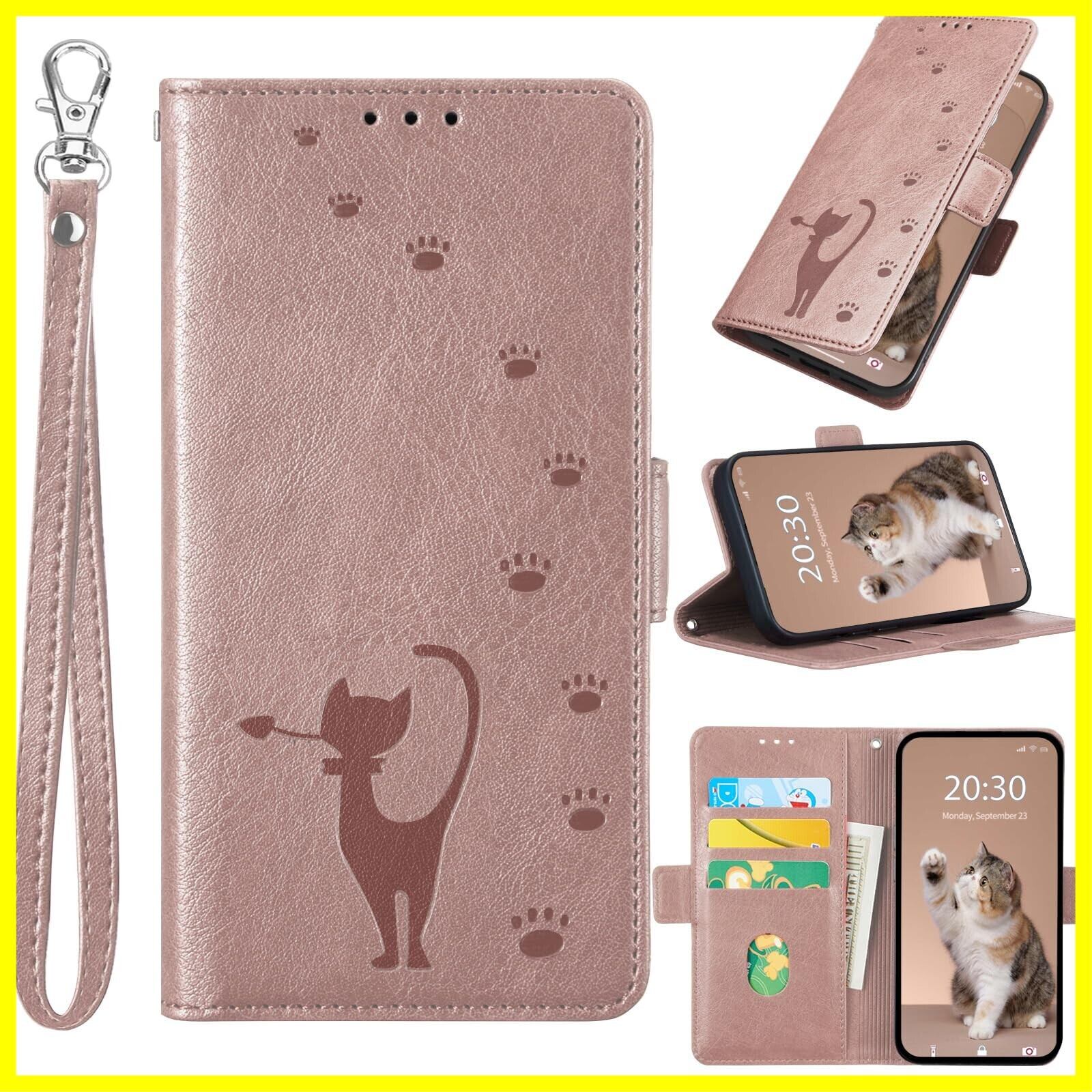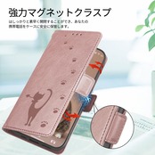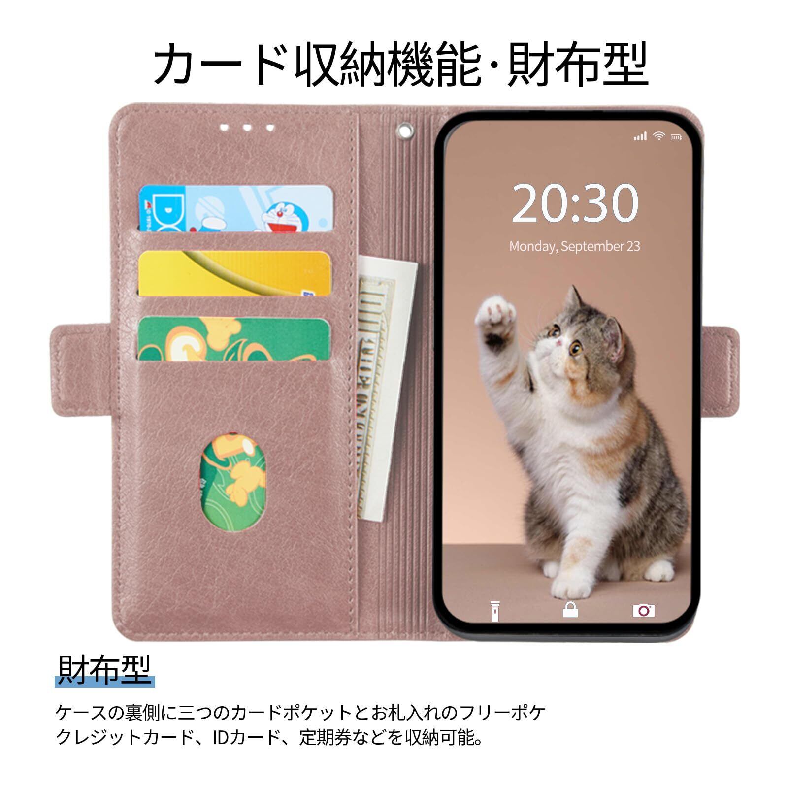 BASIO Active SHG09 / BASIO Active2 SHG12 ケース 手帳型 シンプルスマホ6 ケース 手帳型 Simple Sumaho6 A201SH ケース 手帳型 かわいい猫のスマホケース(リストストラップ付き) カード入れ収納 スタンド機能 プレミアムPUレザーフォンケース 財布型(ローズピンク)
