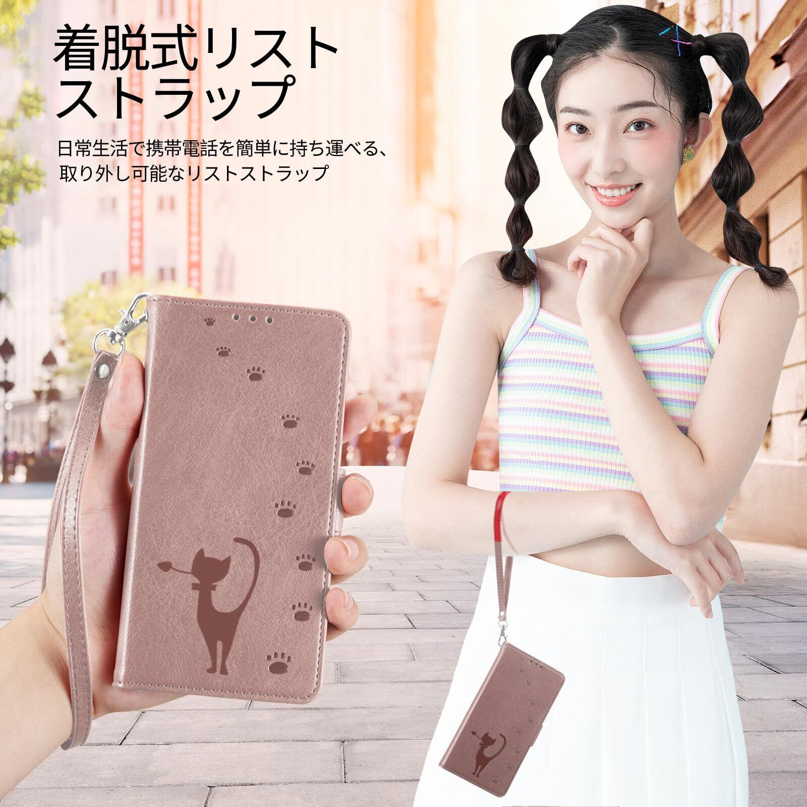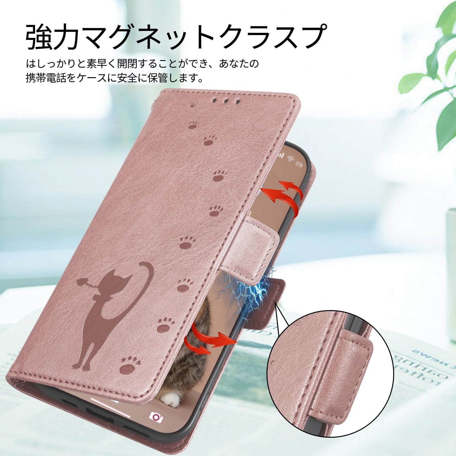 【便利なデザイン】このケースはマグネット開閉式で、携帯電話や持ち物をしっかりと保護し、ハンドストラップは毎日の持ち運びに最適なデザインです。