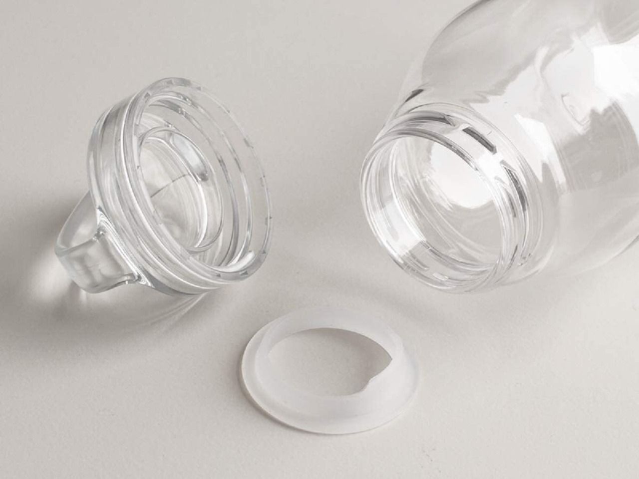 毎日の水分補給をサポートする軽量でコンパクトなWATER BOTTLE。日常使いに適した、傷がつきにくく割れにくい高品質な樹脂素材を採用しました。1回転で簡単に開け閉めできる蓋は、手にフィットして持ちやすいハンドル付きで、気軽に持ち歩けるデザインです。水を入れることで素材の透明感やフォルムの美しさがより際立ちます。