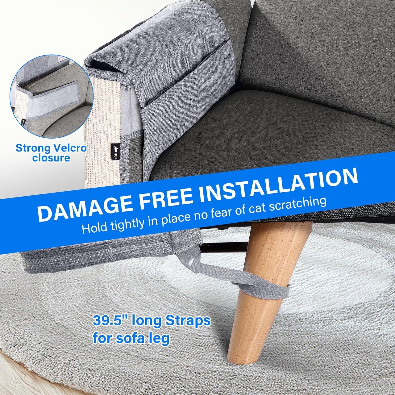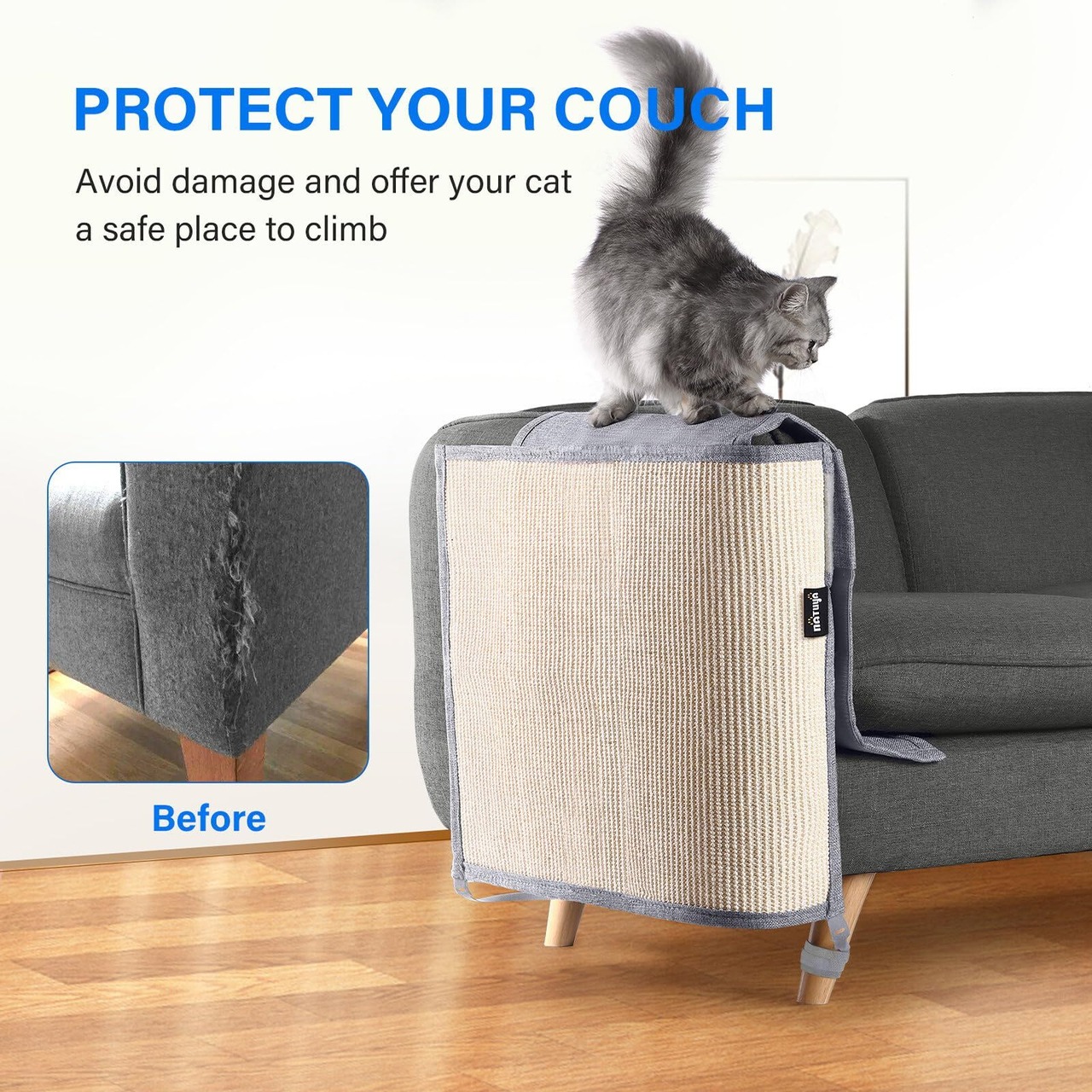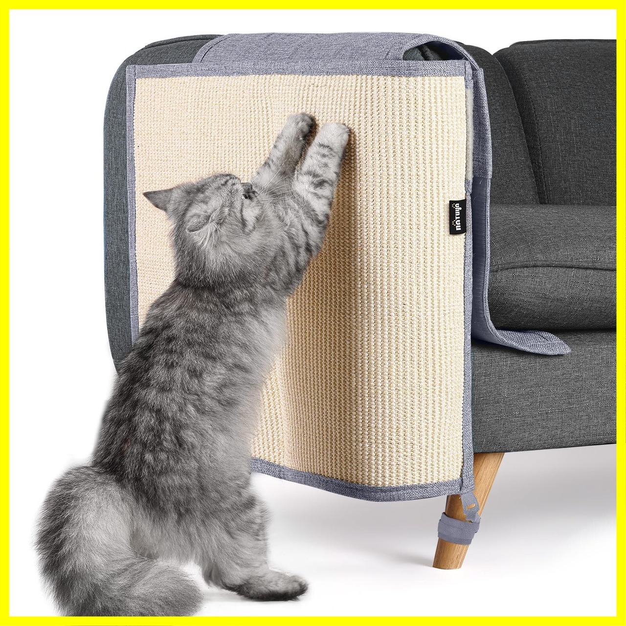 NATUYA 猫 爪とぎ 家具保護 爪とぎマット 爪研ぎ ソファー 椅子 サイザル麻 天然素材 無毒 安全 耐磨性 麻マット ソファーカバー ツメ傷保護シート 猫ひっかき傷 保護シート 取り付け簡単 犬にも使用可能 (右, ライトグレー)