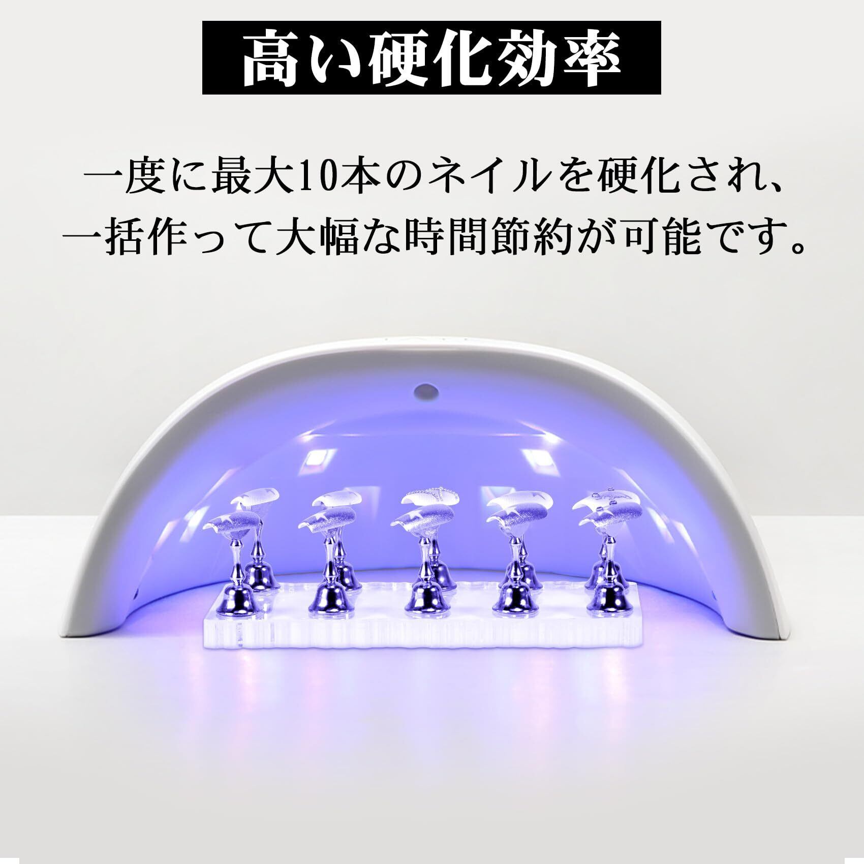 【使い勝手】ネイルチップ置きは1つひとつ手で持ちながら使えるものや複数同時に施術できるため全体のバランスを考えてネイルアートの制作を行えます。ジェルを硬化させるときは、ネイルスタンドも一緒にライトに入れられます。