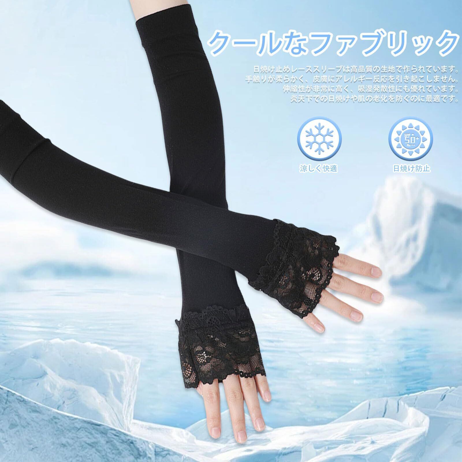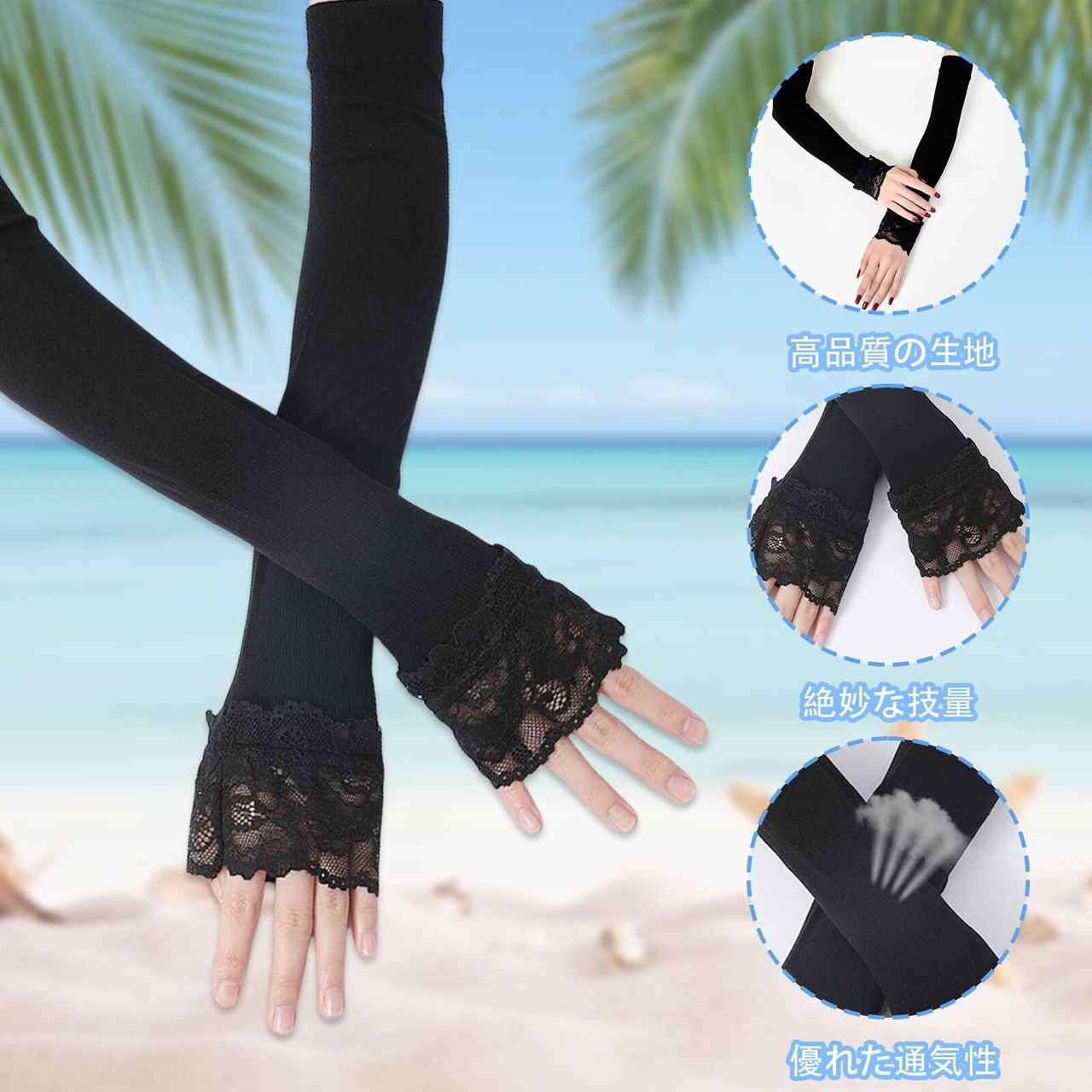 [Kingsie] アイススリーブ アームカバー 夏 UV レディース 手袋 レースカフ 日焼け防止 UVカット 腕カバー 紫外線カット 指なし 日よけ防止 女性用 おしゃれ 運転 運動会 通勤 通学 日焼け止め