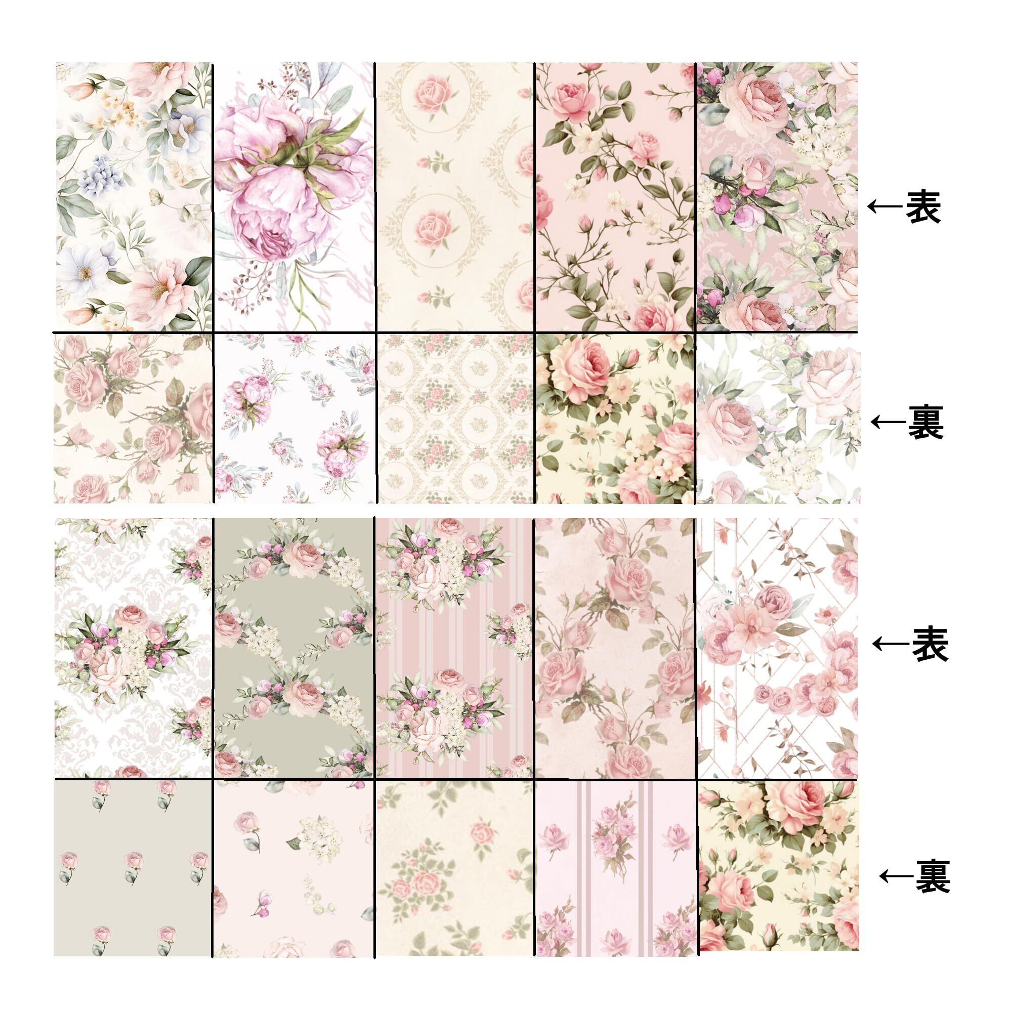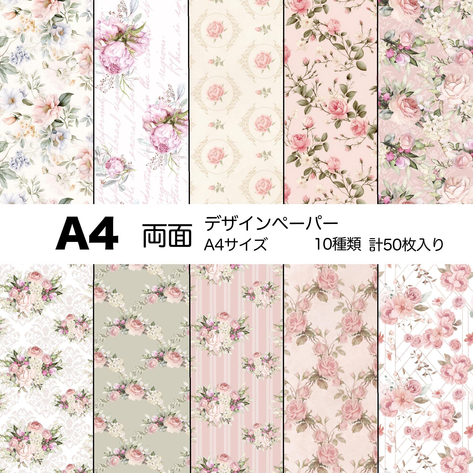 TOHYAN A4 両面デザインペーパー ピンク系花柄 バラ 上質紙90 デザぺ 包装紙 10種類50枚入 日本製 カラー デザイン用紙 コラージュ ラッピングペーパー ボタニカル エレガント フラワー 可愛い おしゃれ ハンドメイド 工作