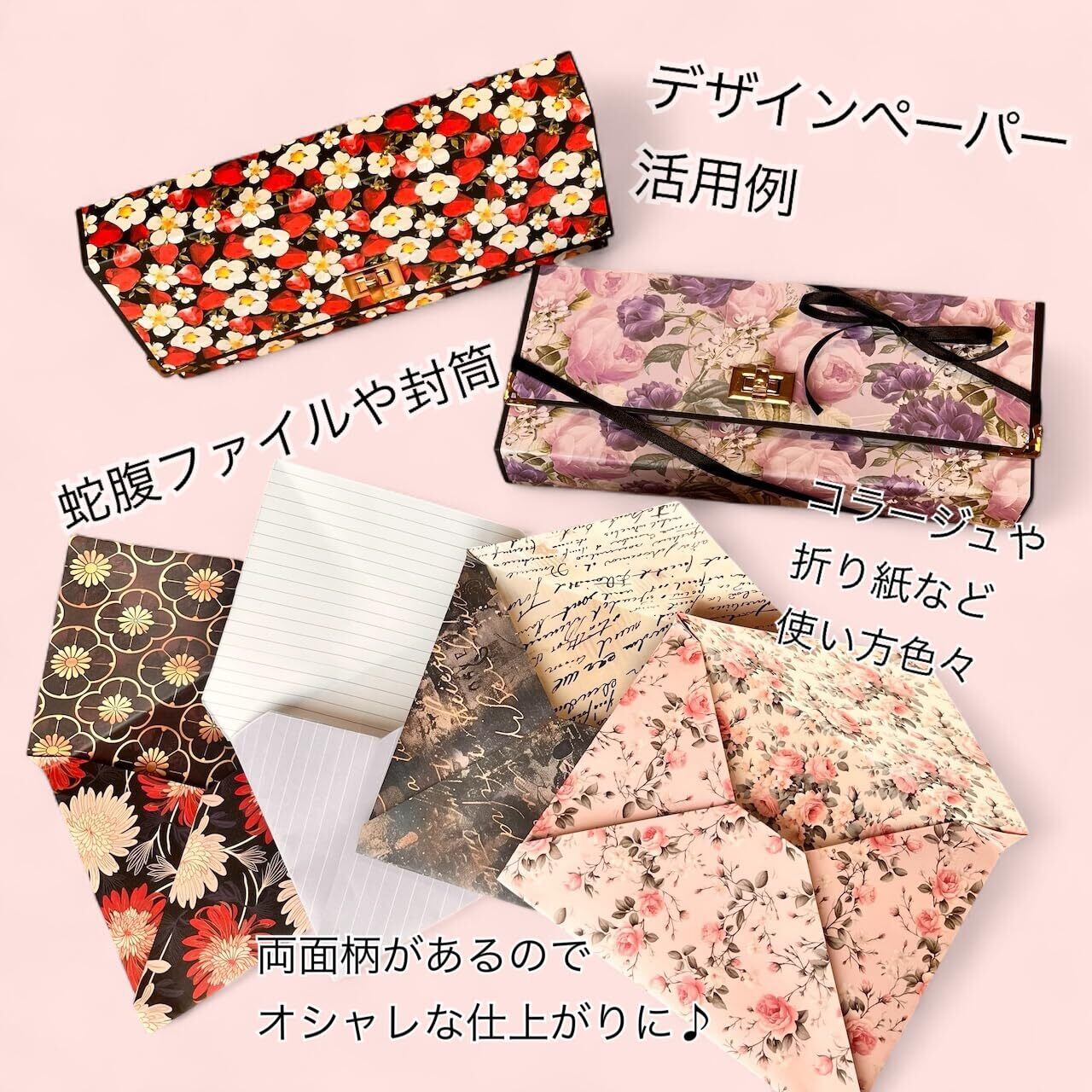 A4サイズのオリジナルデザインペーパー です。両面印刷。ピンク系のエレガントなフラワーのセット。可愛いデザインです。両面お好きな柄をお使いください。 コピー用紙よりも厚め0.12mmの上質紙90kgを使用。 包装紙、コラージュ素材、ブックカバー、台紙、工作、POP、表紙、などなど使い道自由です。 ※パソコン上の色味と現実の色味は異なる見え方がある場合がございます。