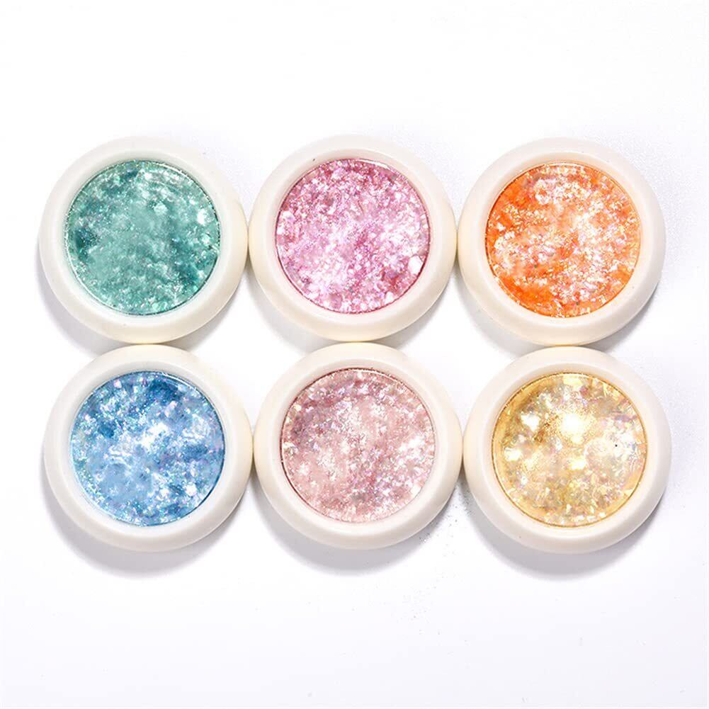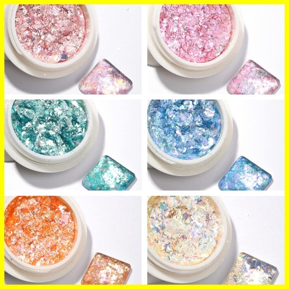 超薄&超輝き ネイルホログラム オーロラレインボーマイカフレーク ネイルホロパーツジェルネイルレジン用 ネイルアートパウダー (6色セット)