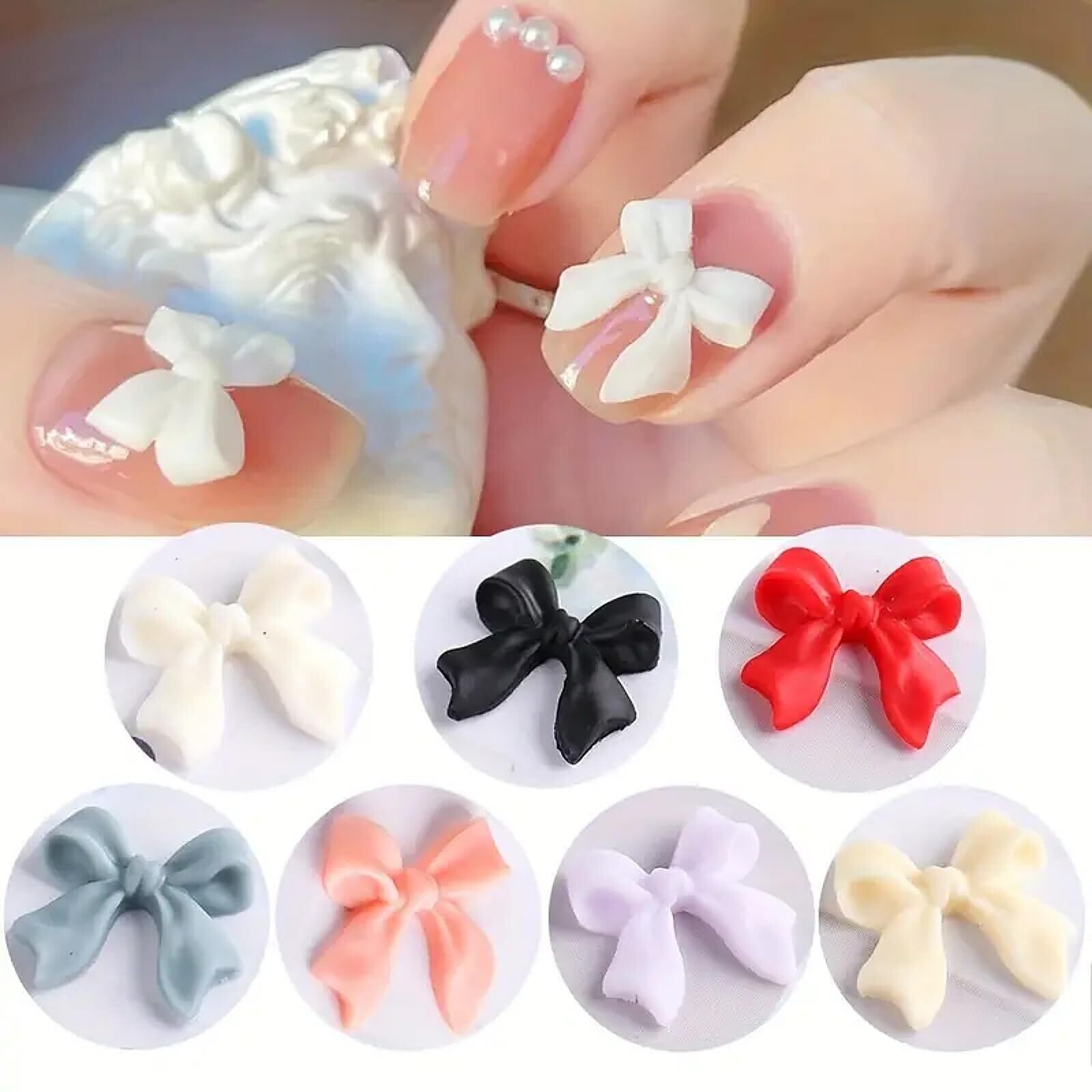 【リボンネイルパーツ】立体感があるカラフルなリボンパーツです。ネイルのワンポイントに最適です。大きめな蝶結びなので、存在感があり、ネイルを可愛らしく飾ります。