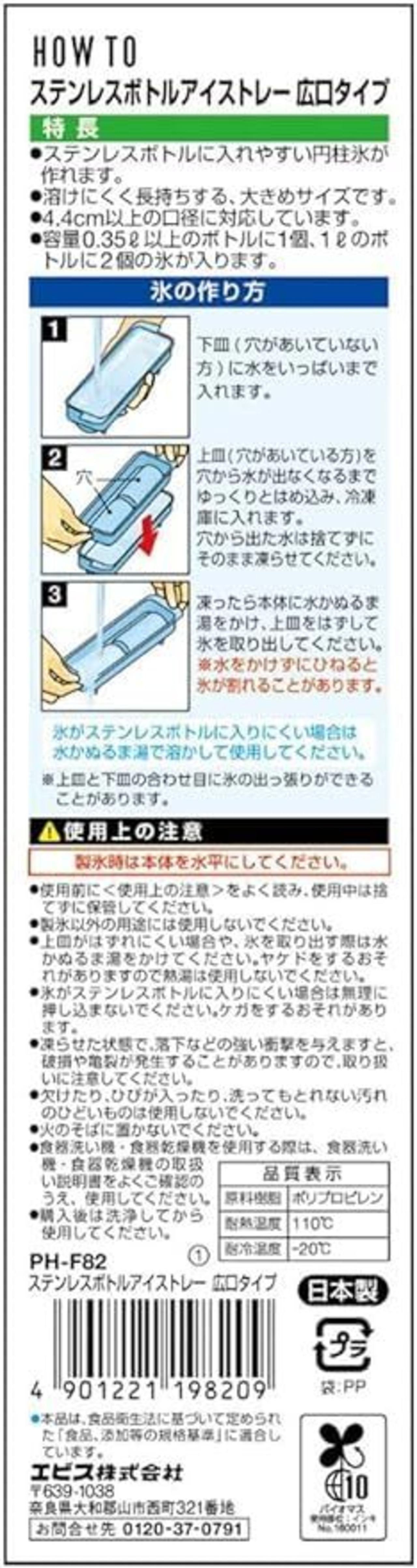【まとめ買い2個セット】エビス(Ebisu) ステンレスボトル アイストレー 円柱 広口タイプ 2本取り 製氷皿 アイストレー水筒用 ステンレスボトル用 PH-F82