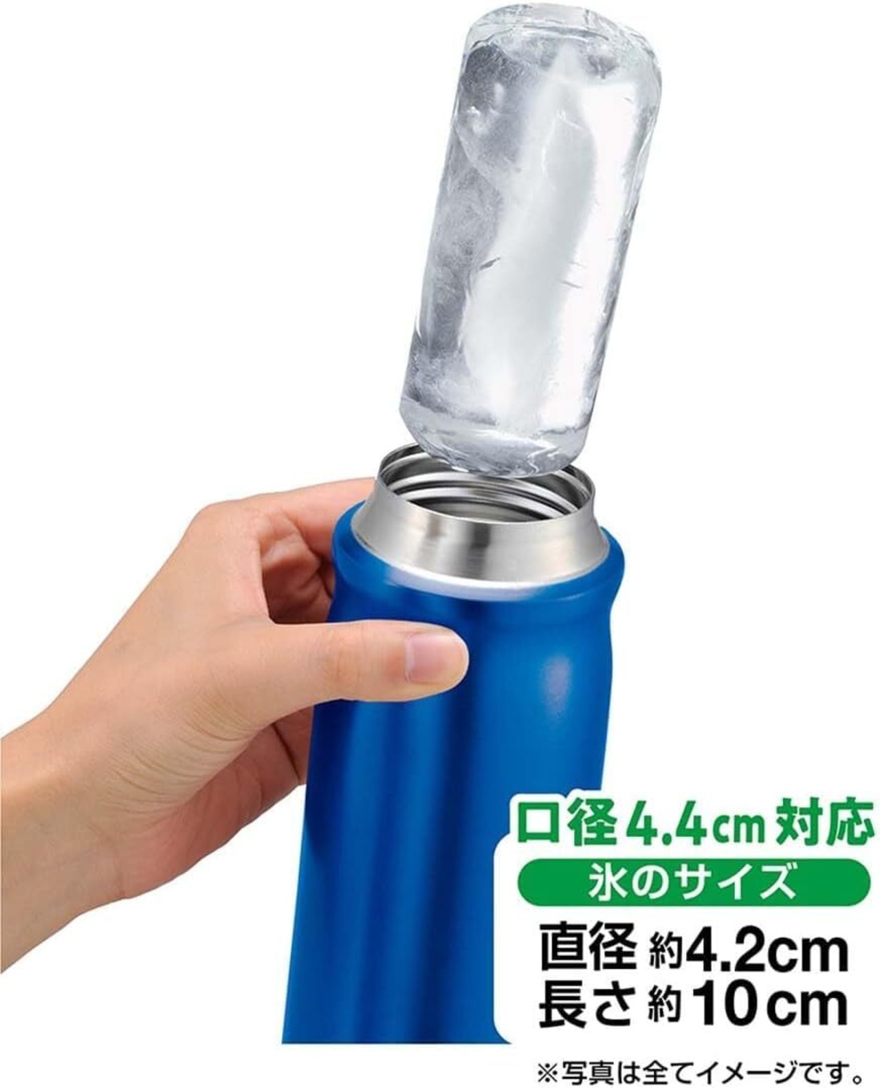 サイズ:幅7.3×奥行26×高さ5.1cm 氷数:直径4.2cmの太目円柱型氷2本 / 付属品:フタ 水筒口径:4.4cmまでの口径に対応 氷のサイズ:直径約4.2cm 長さ約10cm 広口の水筒、ステンレスボトル、マグボトルにピッタリサイズの氷ができる