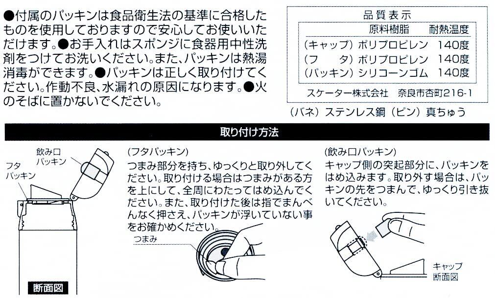 「スケーター」社製品のダイレクトステンレスボトル470mlの専用部品