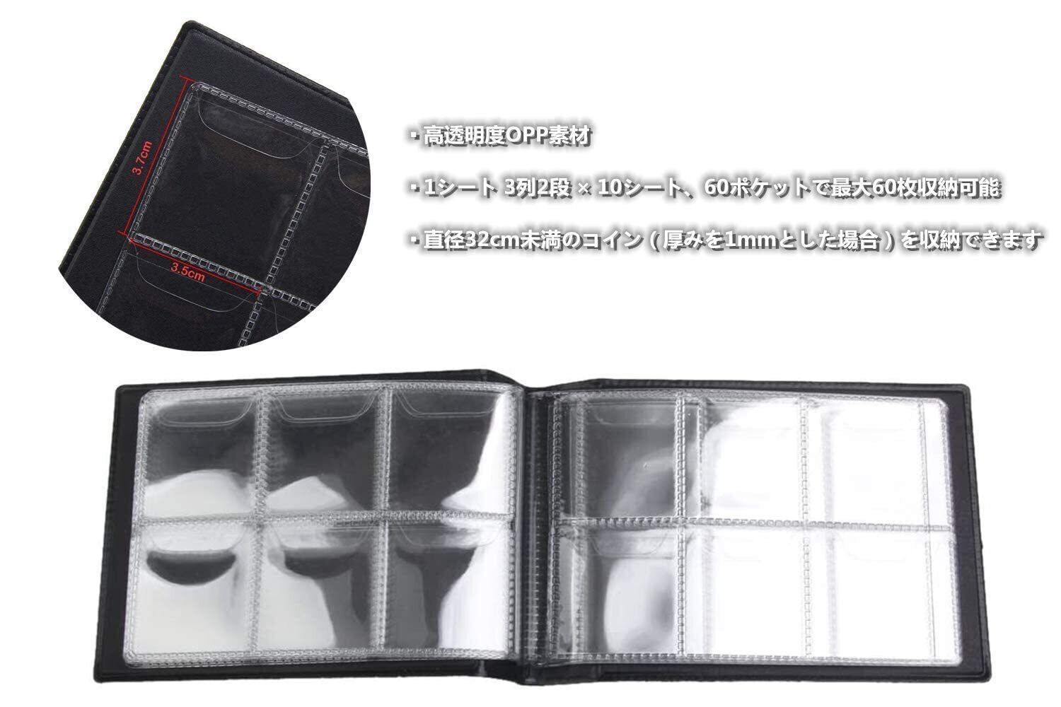 コインアルバムサイズ:約13.5 X 9.8×1.3cm。各ポケットサイズ:約3.5 X 3.7cm。直径32mm未満のコインに適しています。収納枚数:60枚。