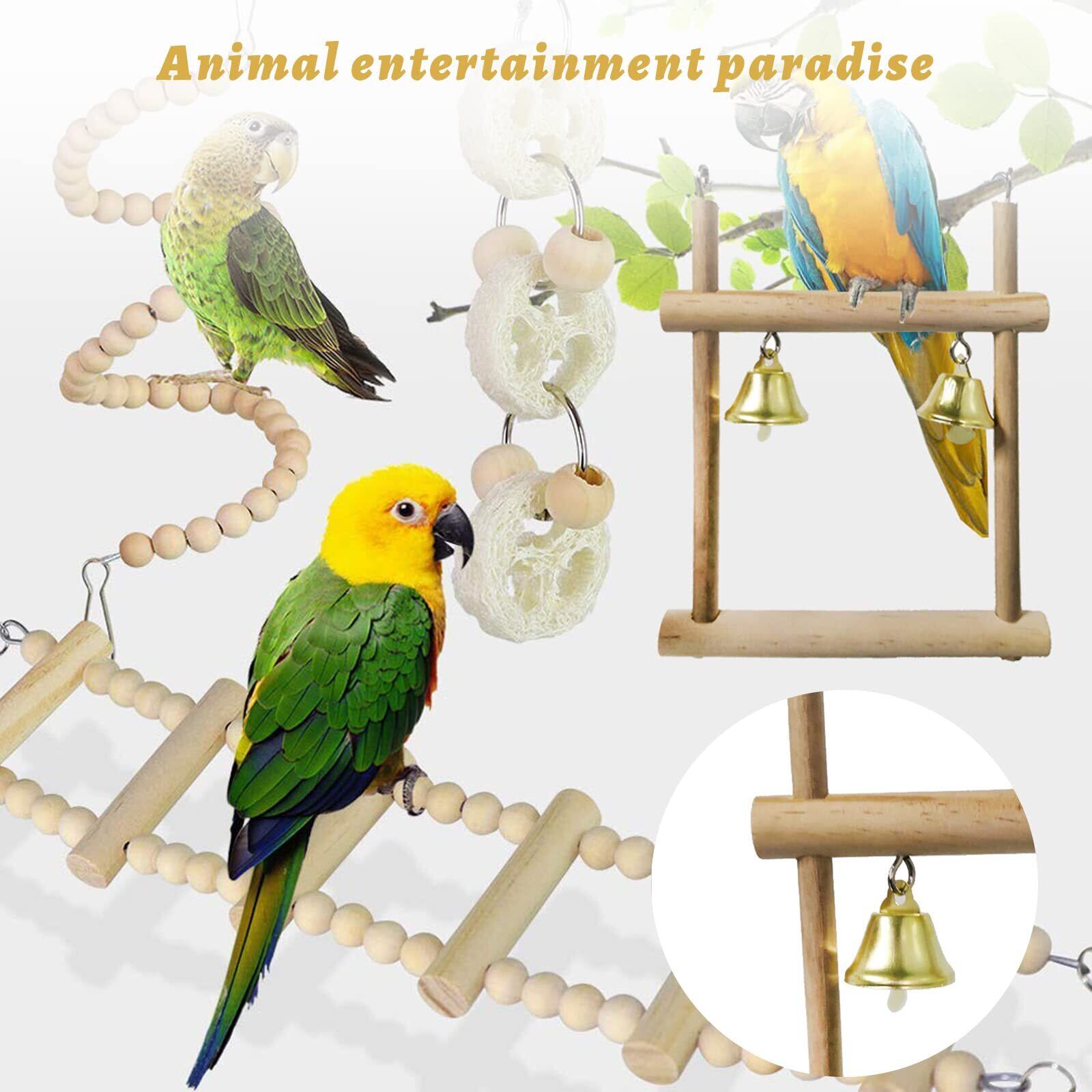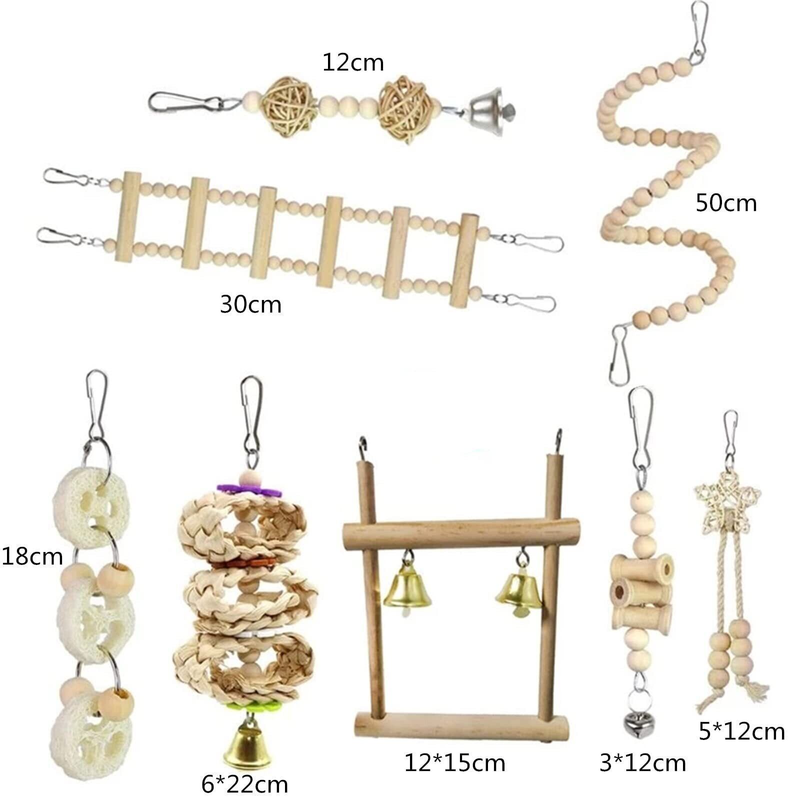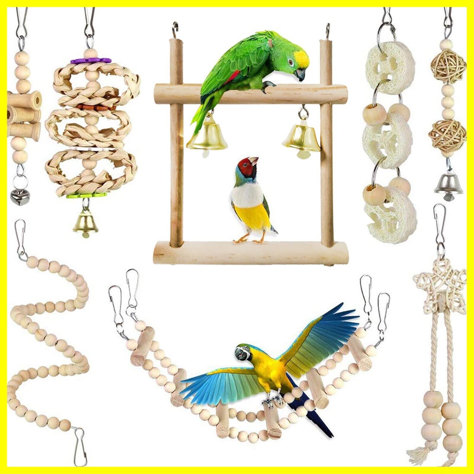 インコ おもちゃ 8点セット 木製 鳥のおもちゃ 吊り下げ 噛む玩具 ブランコ はしご 止まり木 オウム セキセイインコ オカメインコ バードトイ 遊び場 (8点セット A)