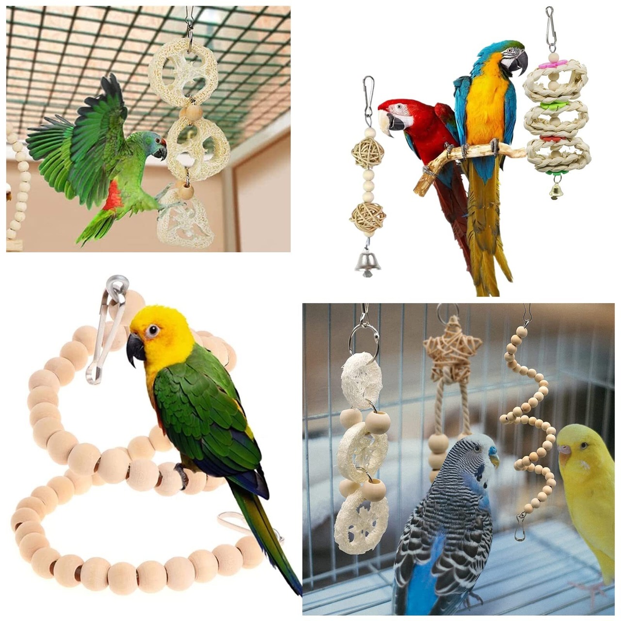 吊り下げタイプなので、ケージに取り付けやすい。ケージ内のアレンジがおしゃれになります。インコが飽きることなく遊びながら、運動不足とストレスも解消できます。インコを飼うお友達にプレゼントしても喜ばれます。
