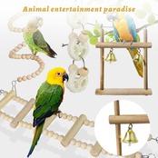 はしご、ブランコ、鈴、噛むおもちゃなど8種類のインコおもちゃがセットで入っています。インコたちの噛みたい欲求と好奇心を満たします。塗料不使用の天然木を採用しているので、鳥がかじっても安心です。ビーズタイプの止まり木はお好みの形に曲げられます。