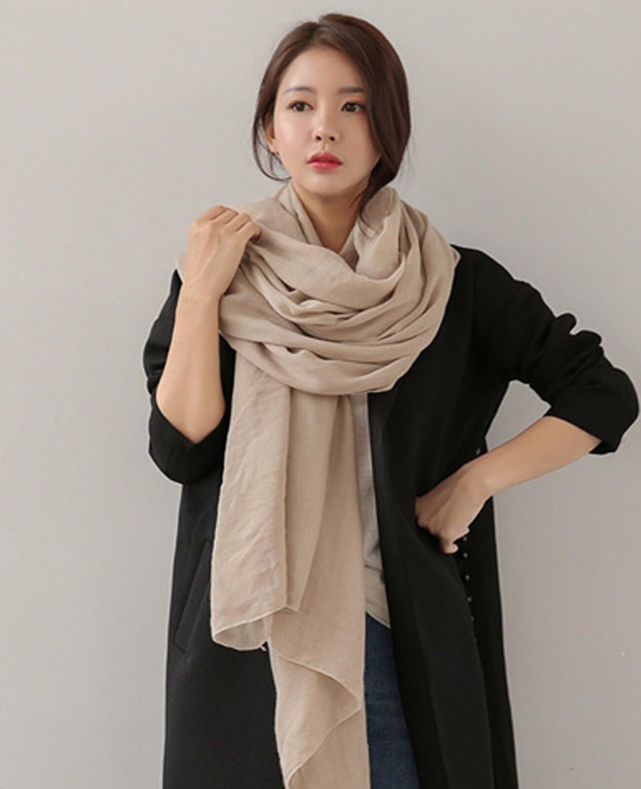 〇【薄くて大きいから使いやすい】ふんわり軽い薄手のストールなのでサイズが大きくても重たくなりません。大判サイズならではの巻き方やアレンジ・コーディネートをお楽しみいただけます。