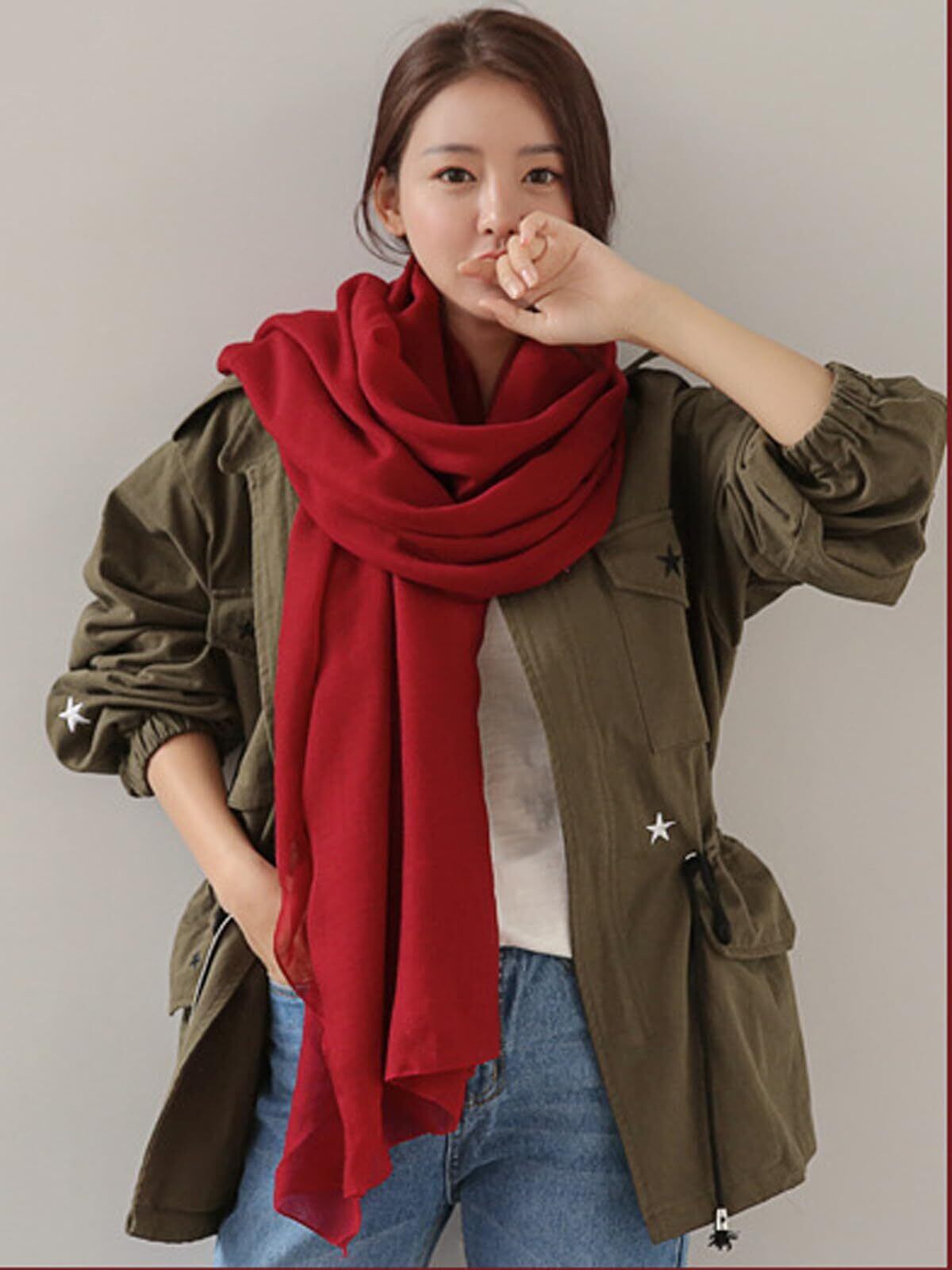 〇大人の無地シンプルな大判レディースストールです。カジュアルからちょっとフォーマルなお出かけまで、スタイルに合わせてお使いいただけます。何枚か色違いでお持ち頂いても大変重宝すると思います。