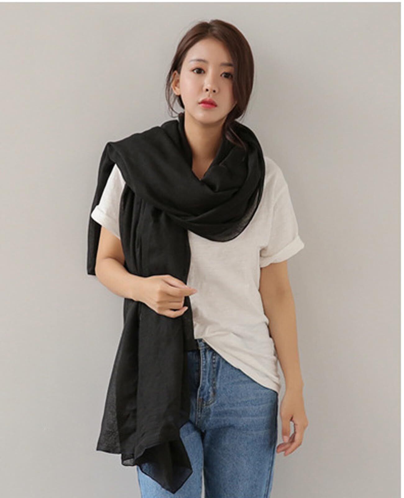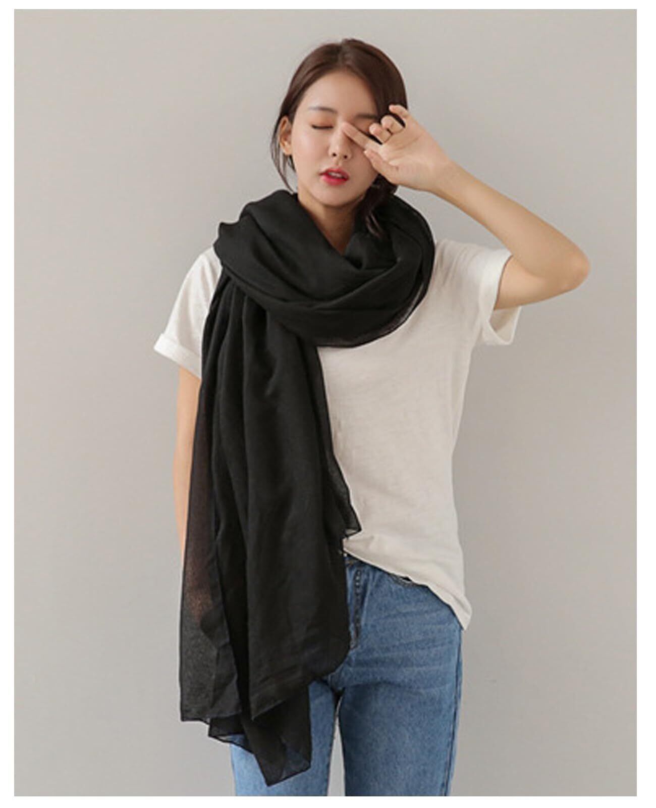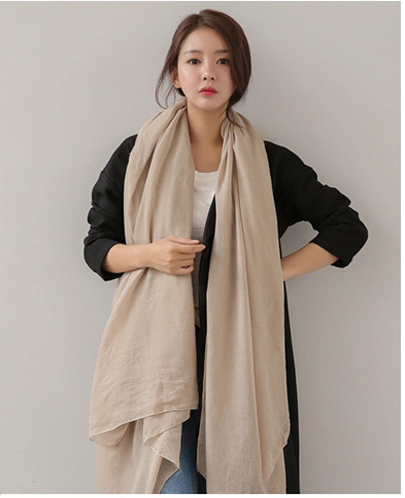 [優億] マフラー スカーフ 大判 ストール レディース ガーゼ 綿麻 柔らかい肌触り ショール 薄手 軽量 ふんわり 無地 おしゃれ 海辺 旅行 冷房対策 プレゼント 贈り物 記念日