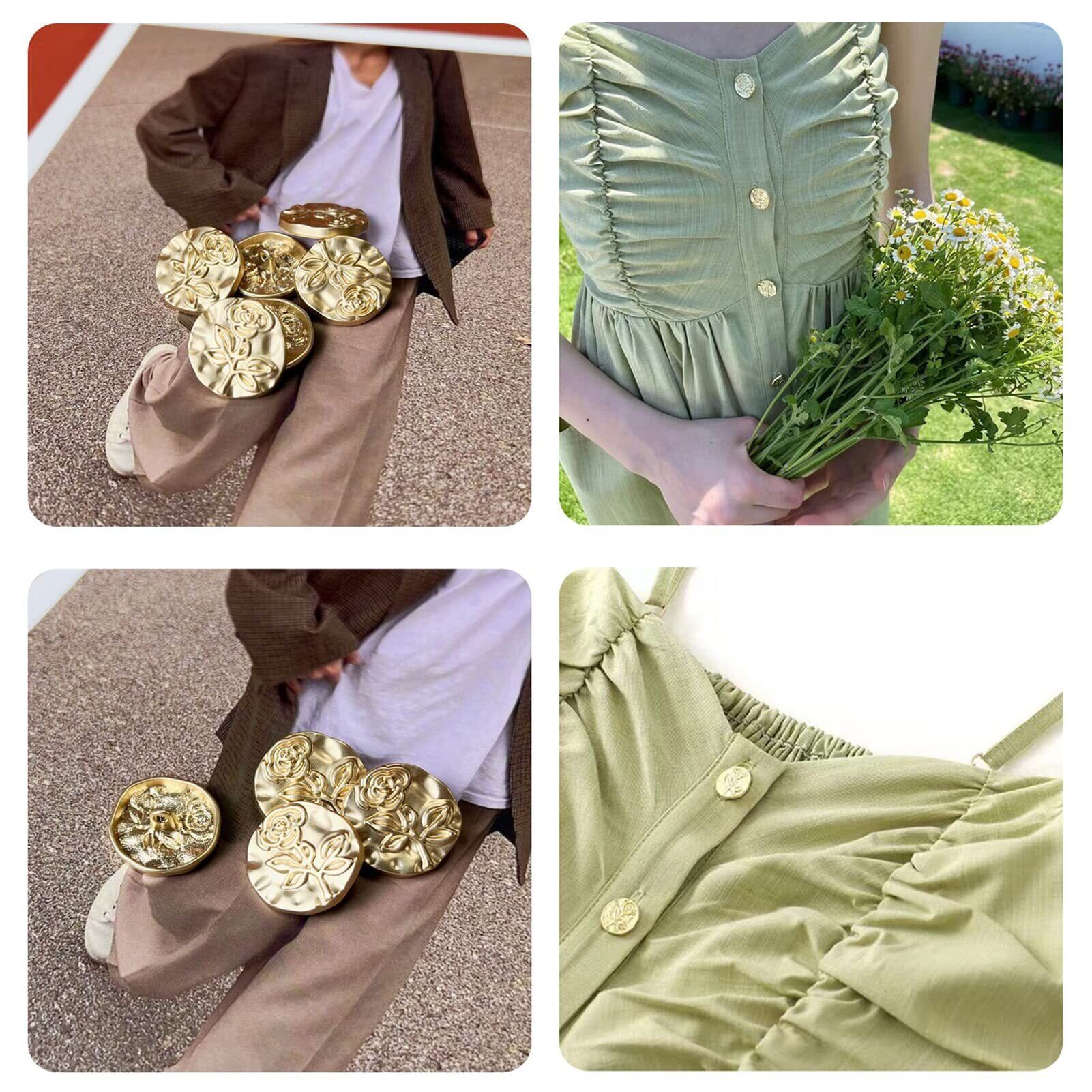 【幅広く応用】: 高級感あふれるゴールドボタン。補修だけでない、静かなさりげない高級感や雰囲気でイメージチェンジ・イメージアップに。フロントボタンと袖ボタンなど用途に合わせて使い分けることができます。また、お洋服のリメイク・リフォーム(お直し)の他にも、ハンドメイド作品のアクセントとしてもお使い頂けます!あなたの好きな衣類を更新するための理想的ハンドメイドな交換ボタン。