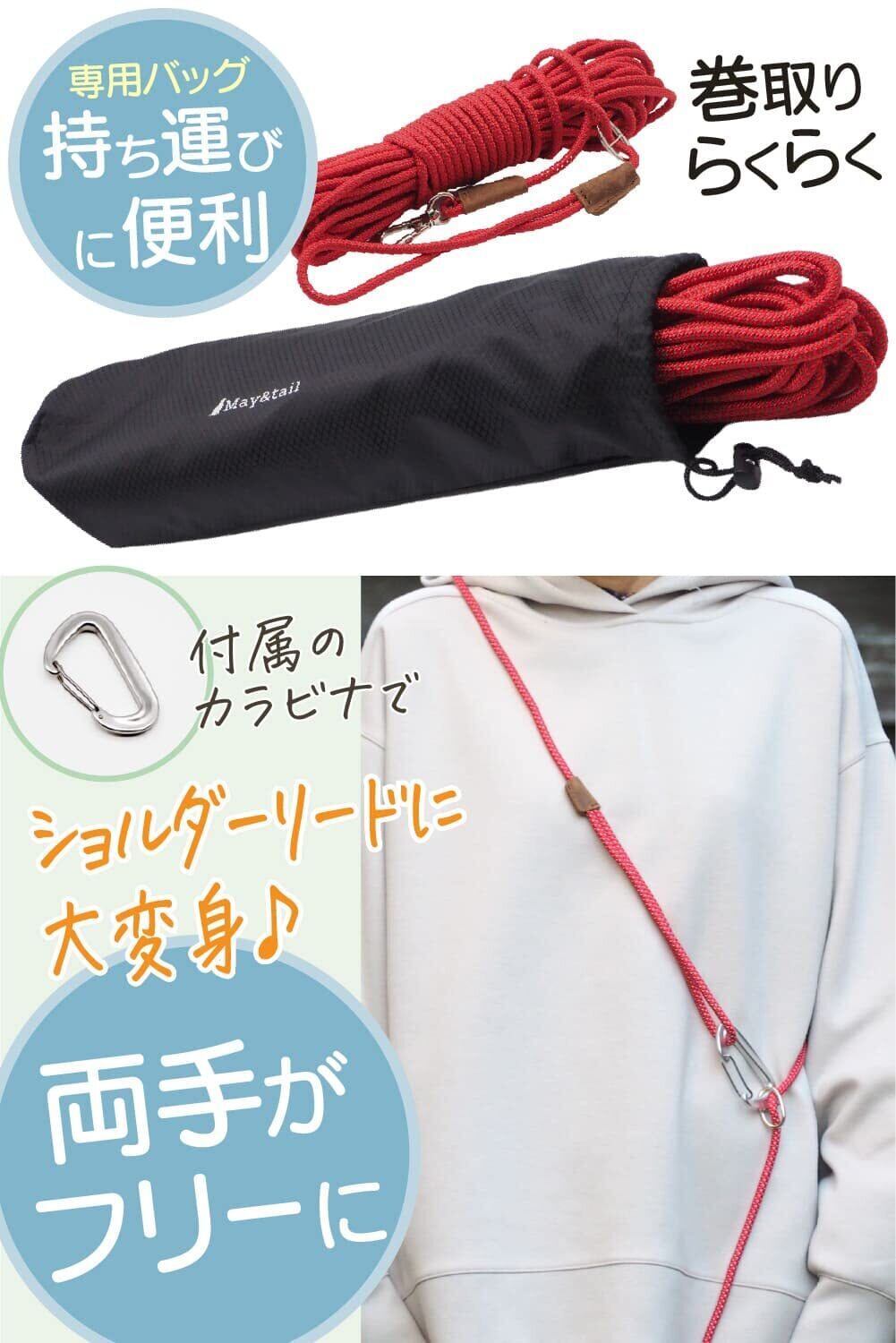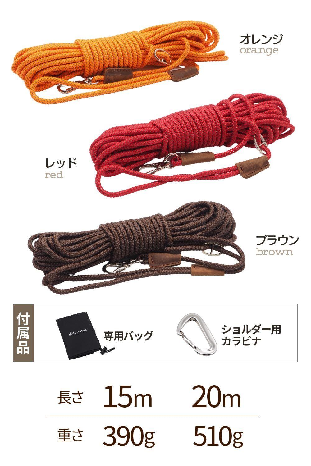 中型犬用 ロングリード 20m レッド 丸ロープ 肩掛け 伸縮 トレーニング しつけ 長い軽量 絡みにくい