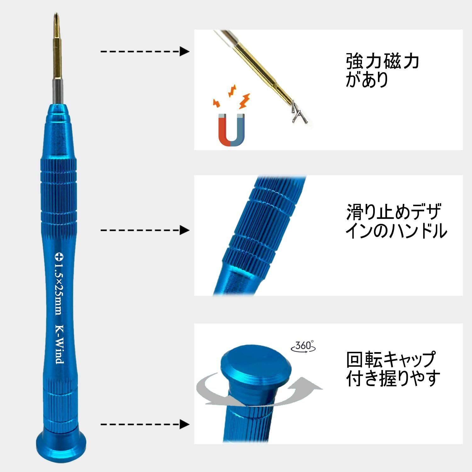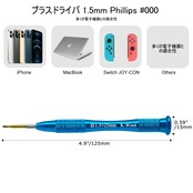 プラス1.5mm/PH000ドライバー S2鋼製 上部360°回転 時計 メガネ パソコン 修理 工具 コンパクトな特殊ネジ用のドライバー for 任天堂 SWITCH(12.5cm)