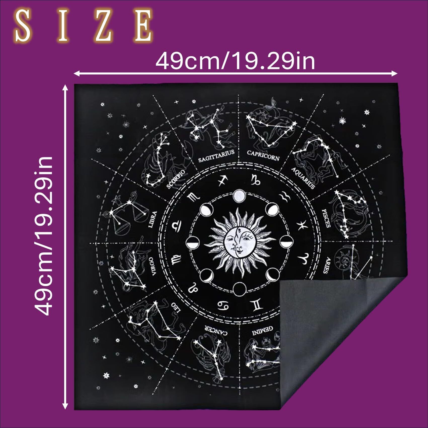 NOELAMOUR タロットクロス ベルベット 星座 大判 49×49cm タロットカード 占い オラクルカード マット (ブラック)