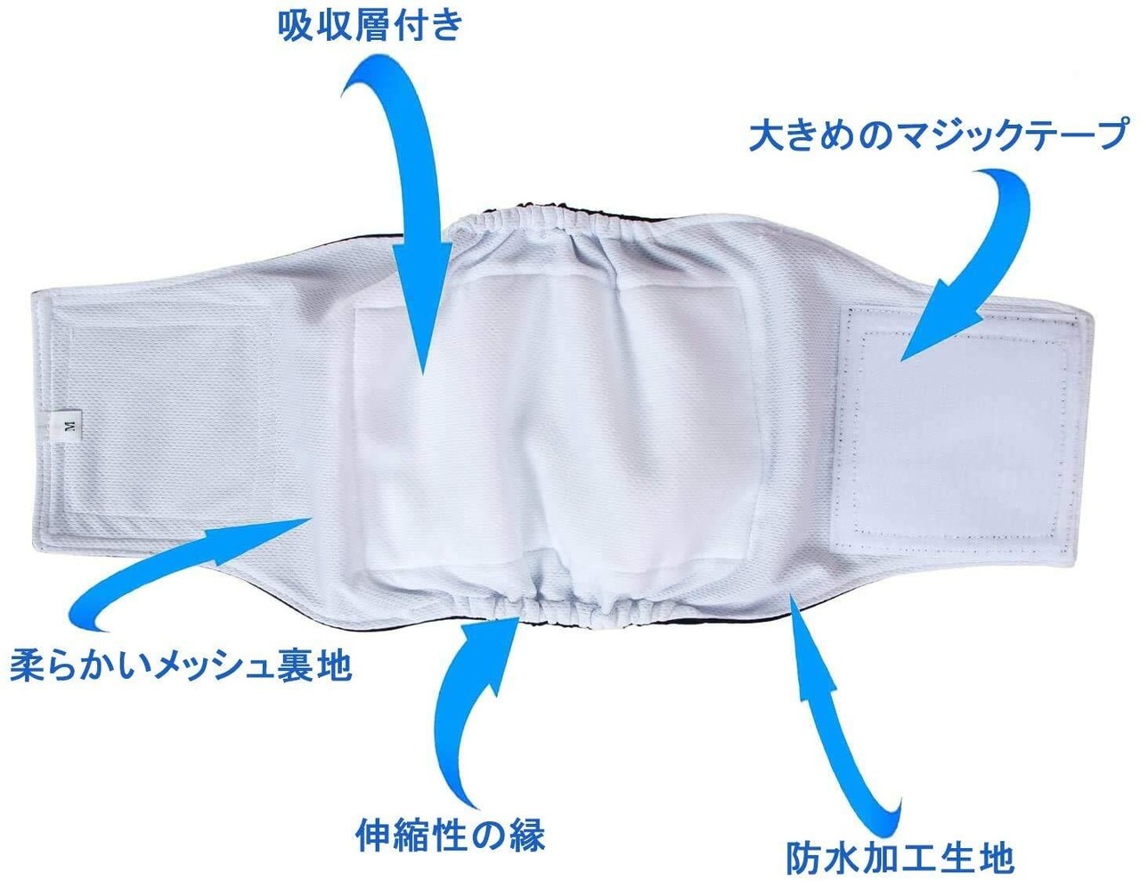 固定用のマジックテープは大きくて、愛犬に適切なサイズに調整できます。伸縮性の縁で、わんちゃんの動きにもピッタリフィットします。
