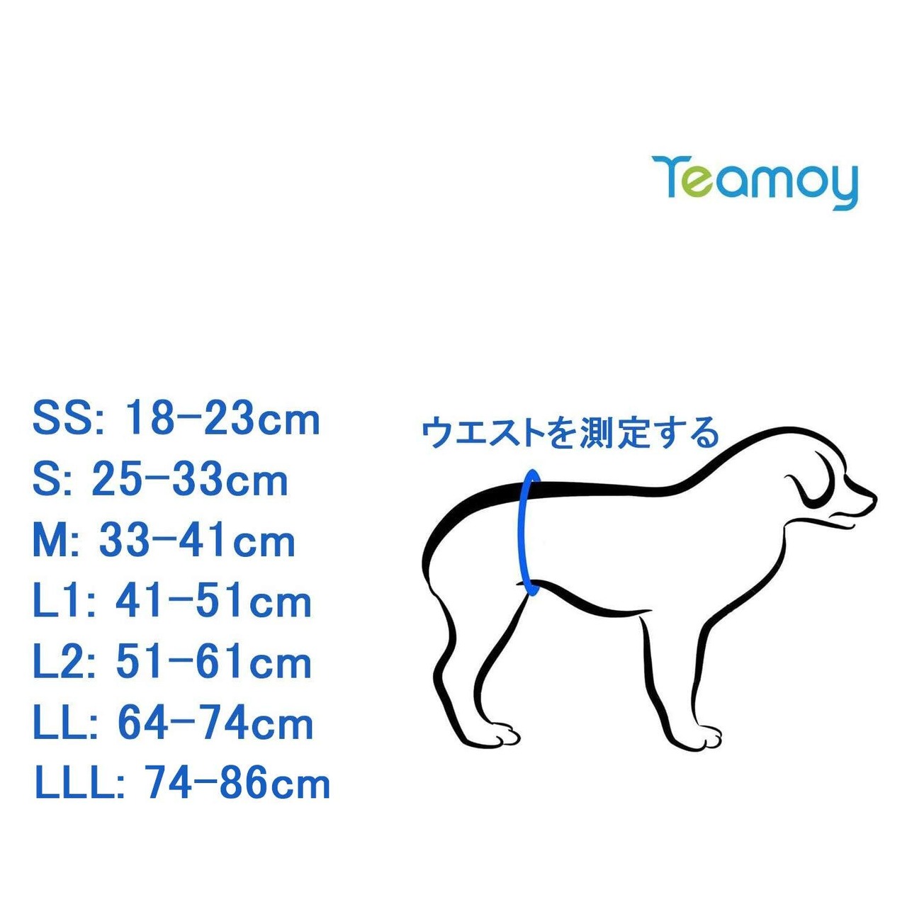 7つのサイズを用意しております。購入前に愛犬のウェストを測定して、サイズ表を参照してください。