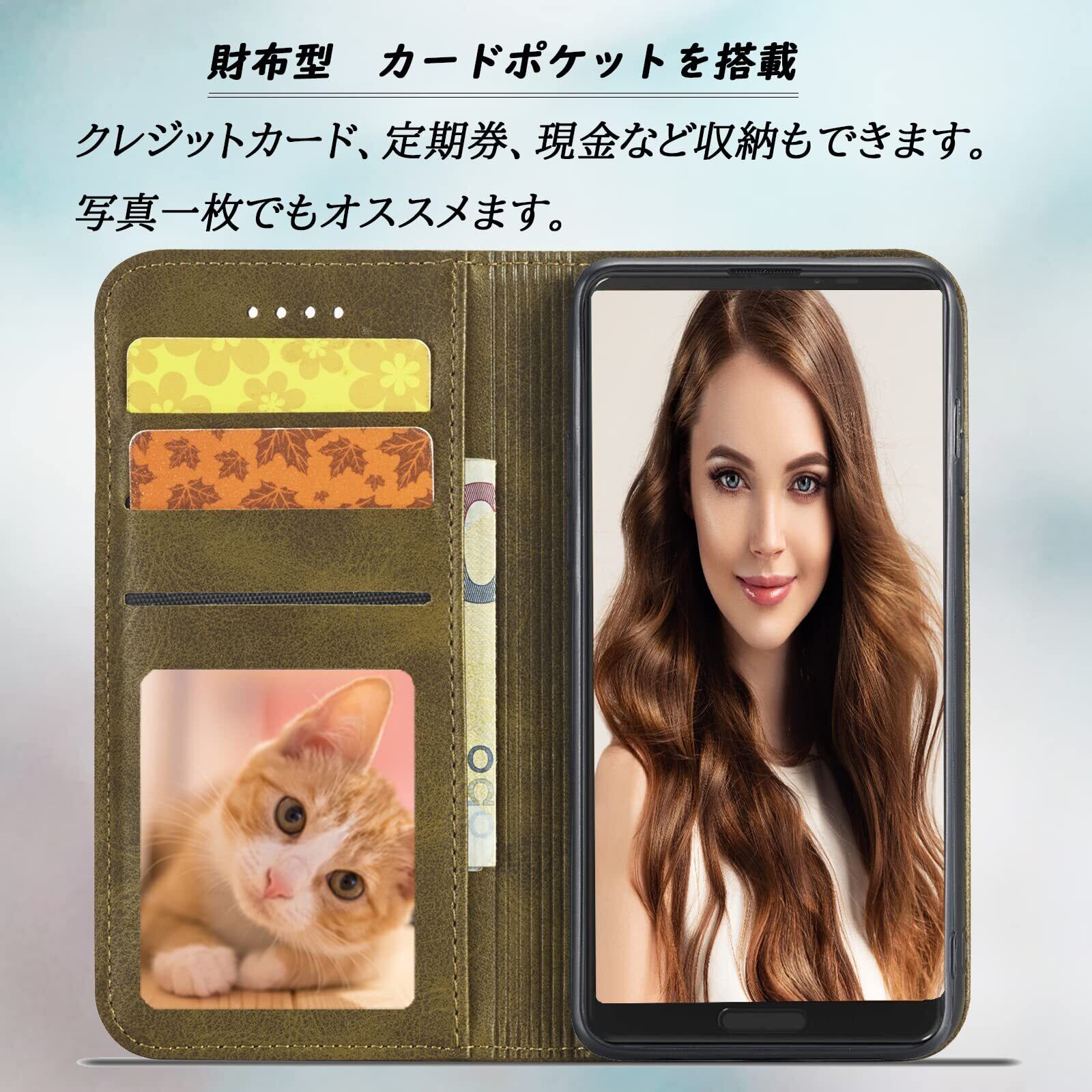 Galaxy A55 5G ケース手帳型 SC-53E SCG27 ケース サムスン ギャラクシー A55 ケース カバー 手帳型ケース Sumsung galaxy A55 5G case カードケース 携帯ケース スマホケース 携帯カバー TPUケース PUレザー ストラップホール付き カード収納 財布型 マグネット内蔵 スタンド機能 耐衝撃 耐摩擦 オリーブグリーン