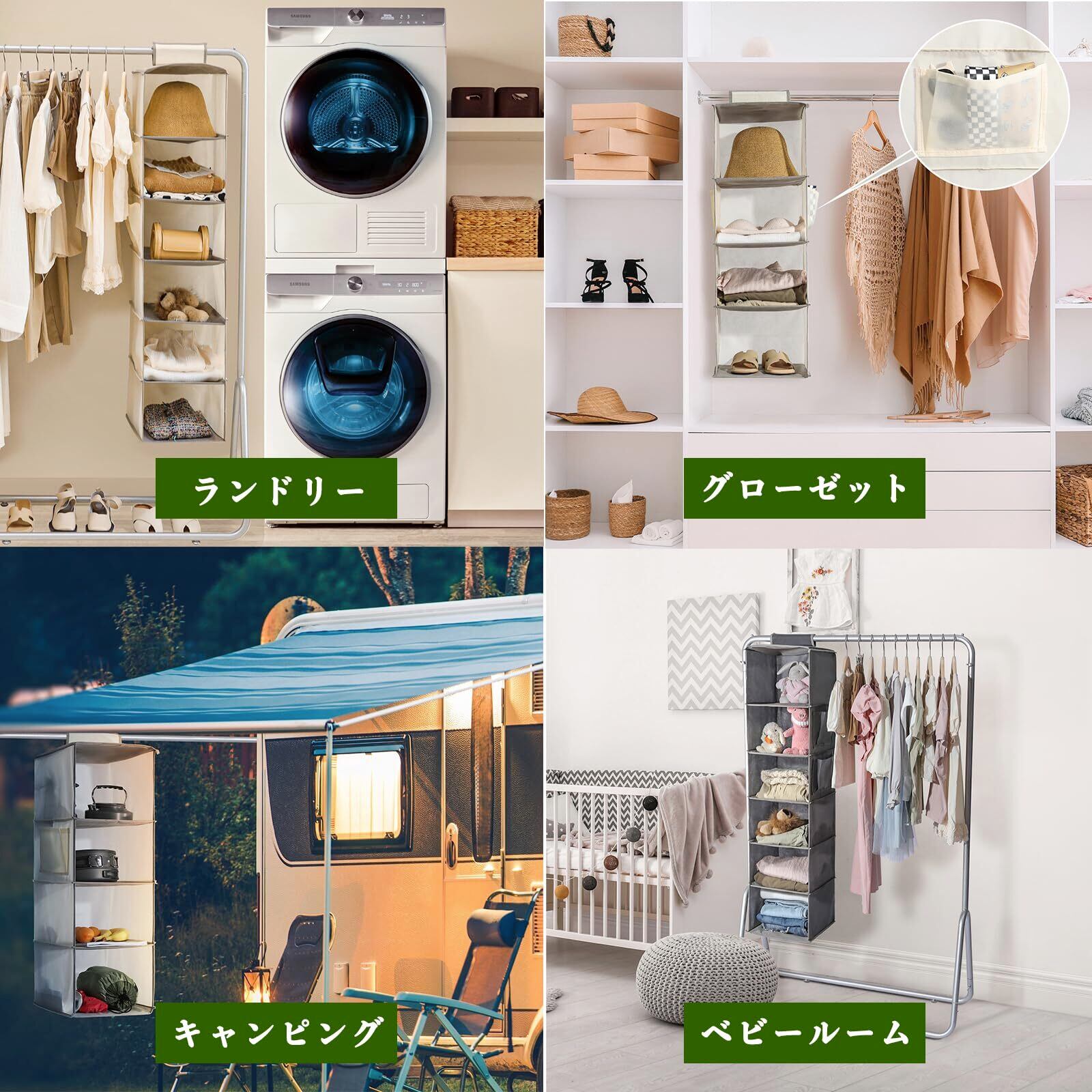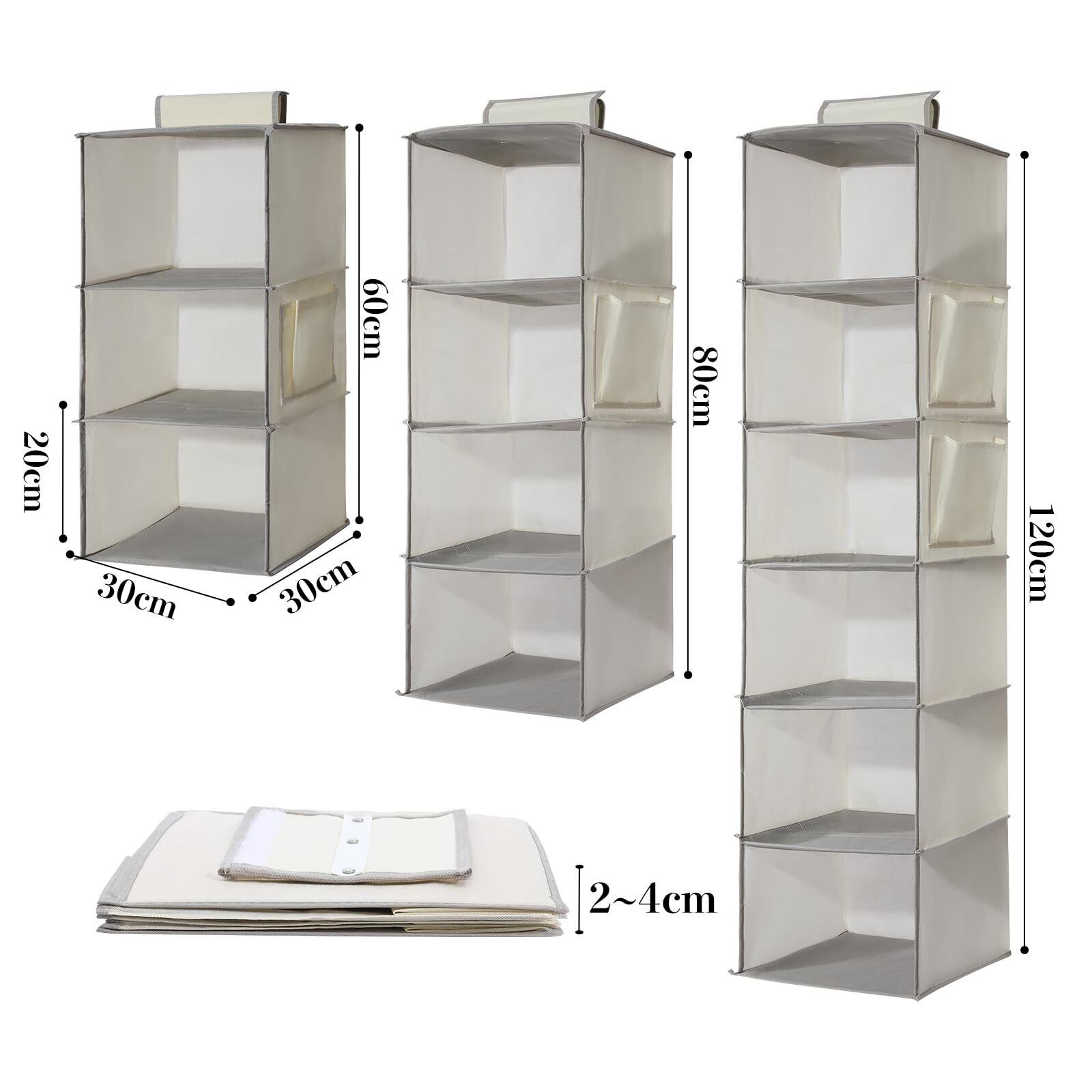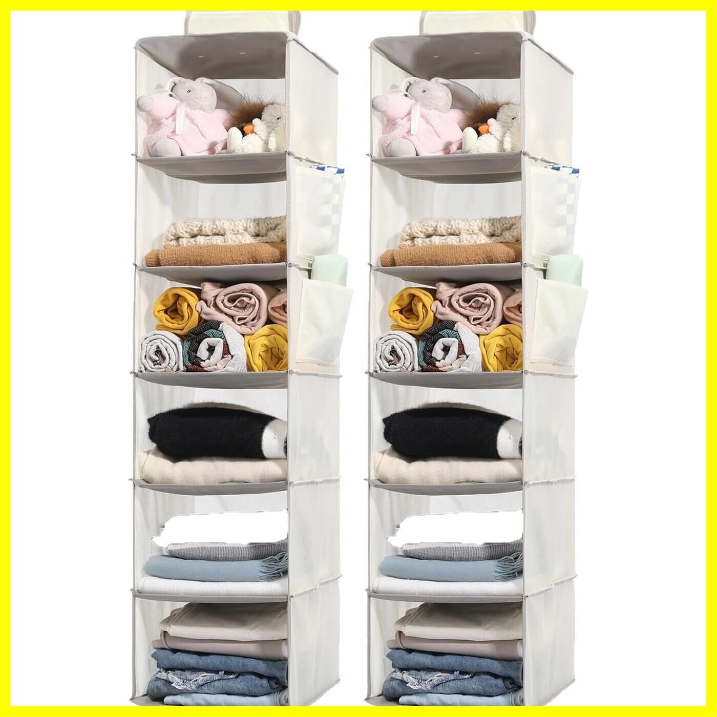 吊り下げ収納 6段 2点 クローゼット 衣類ラック 帽子/鞄 収納ラック 大容量 取付簡単 折りたたみ 収納/旅行/出張 30x30x120cm ベージュ