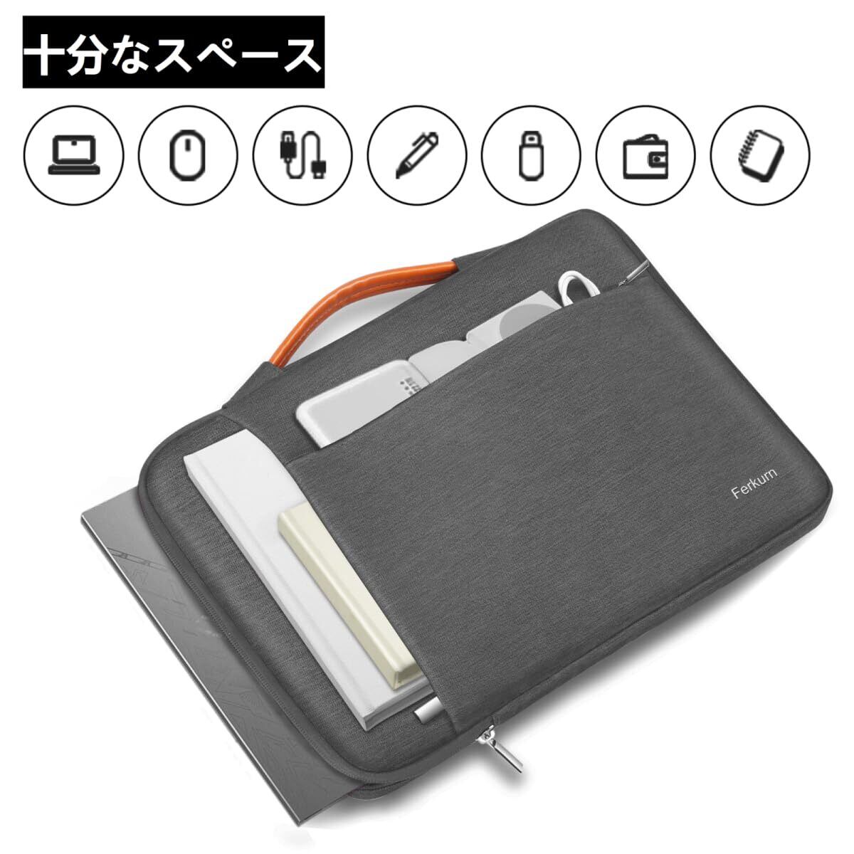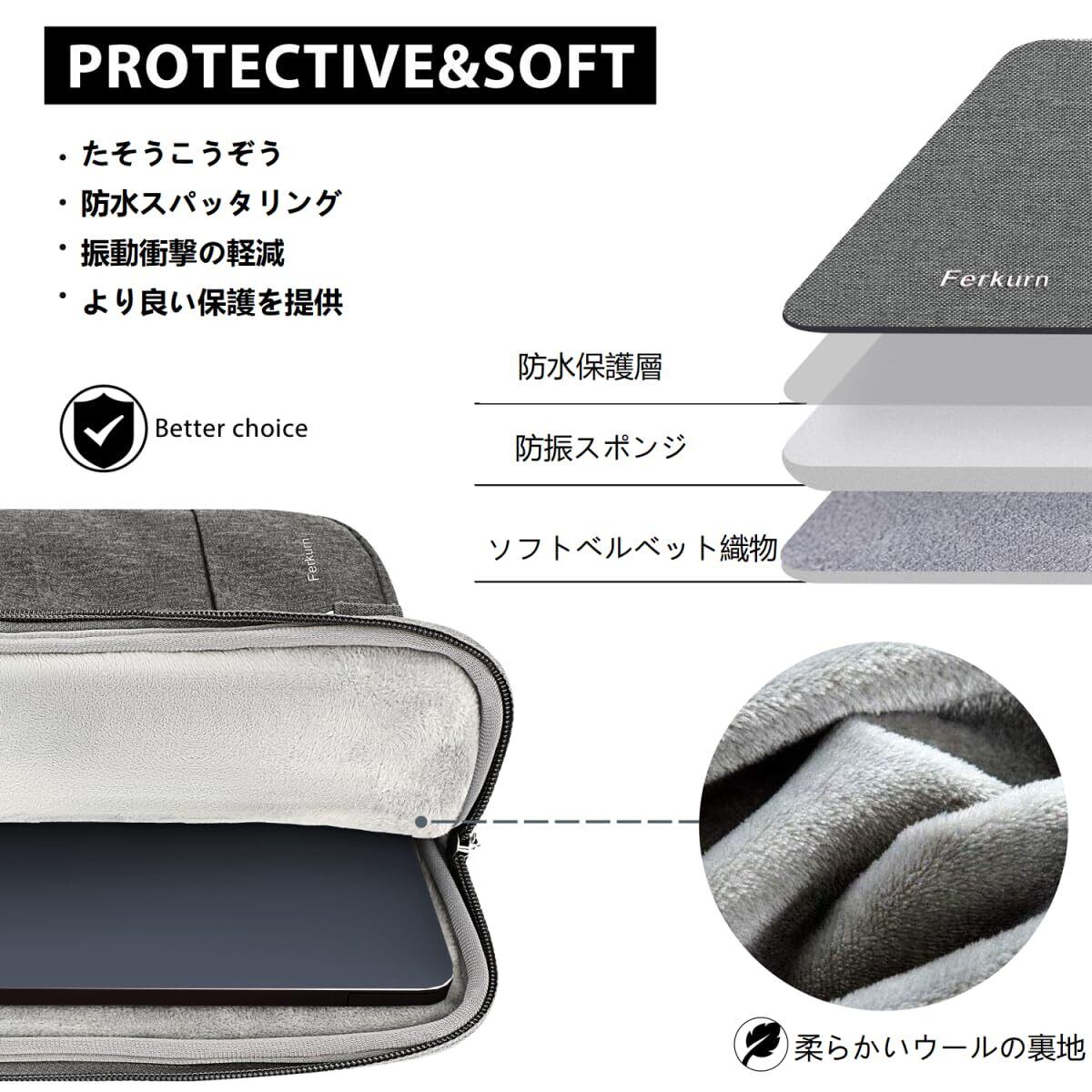 Ferkurn パソコンケース PCケース 手提付き 360°保護 ノートパソコンケース pcバッグ 撥水加工タブレット ケース MacBook Air/Pro/iPad/Surface/Chromebook シリーズ/Asus/Lenovo/レノボ/Dell/レッツノート/HP/NEC/Dynabook/Acer/富士通 対応 パソコンカバー 13 13.3 13.5インチ 暗灰色
