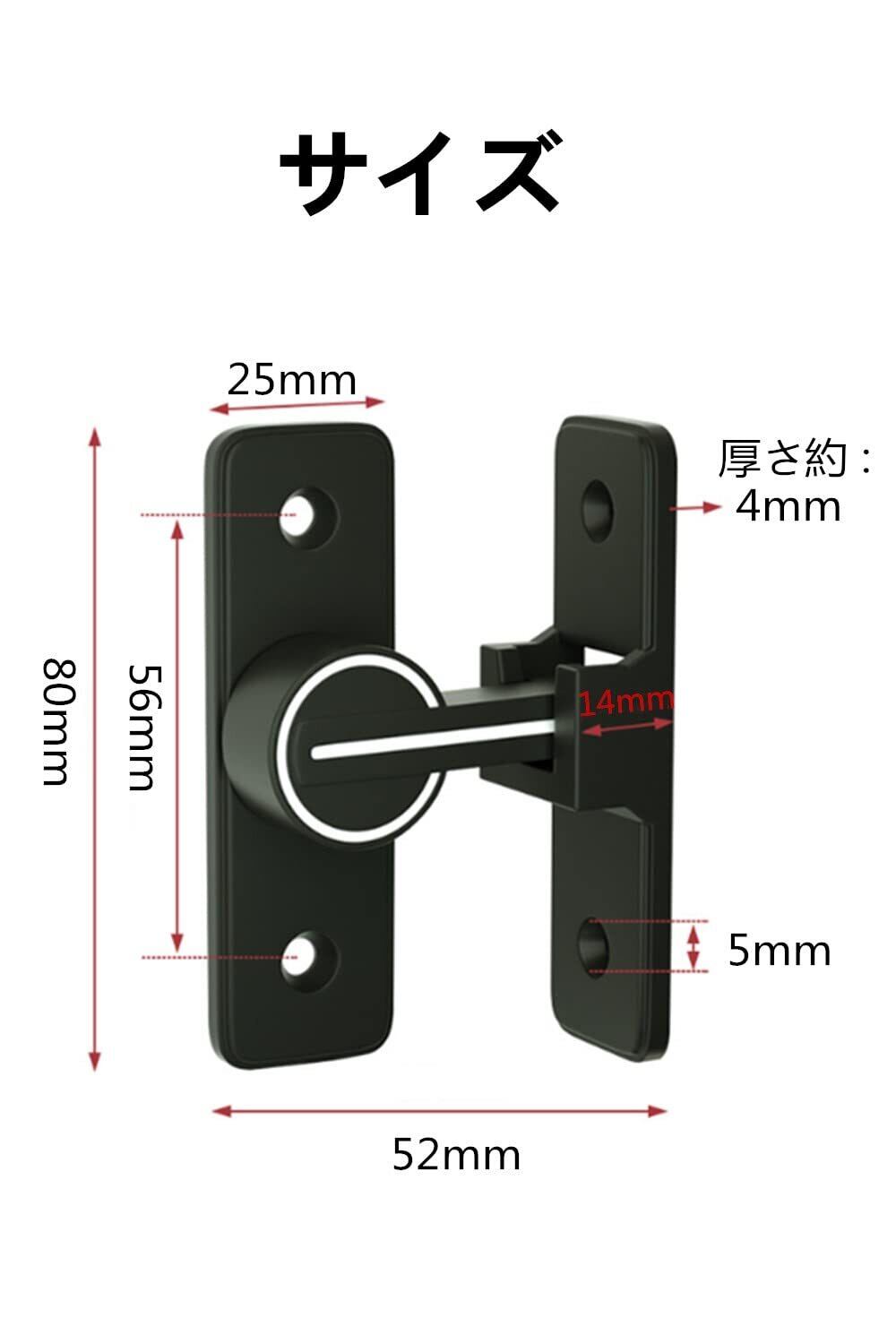 【幅広い用途】木製のドア、金属製のドア、アルミニウム合金製のドアにも適しています。ドアロックの構造は簡単で、設置面積が小さく、実用的で安全性が高い。窓、引き戸の窓、キャビネット、ガレージ、庭園、バスルーム、キッチン、オフィス、ホテルなど、様々な場所や用途にも使えますす。