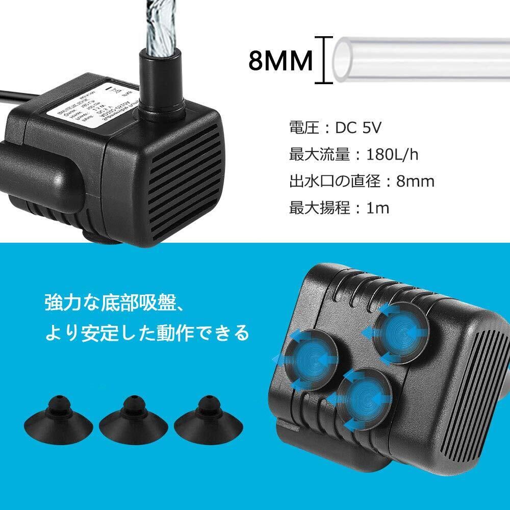 KKDYWQZEE LEDGLE 水中ポンプ 小型 ミニ 排水ポンプ 池 水槽 循環 潜水 USB給電 静音 揚程 1M DC5V 吐出量180L/H