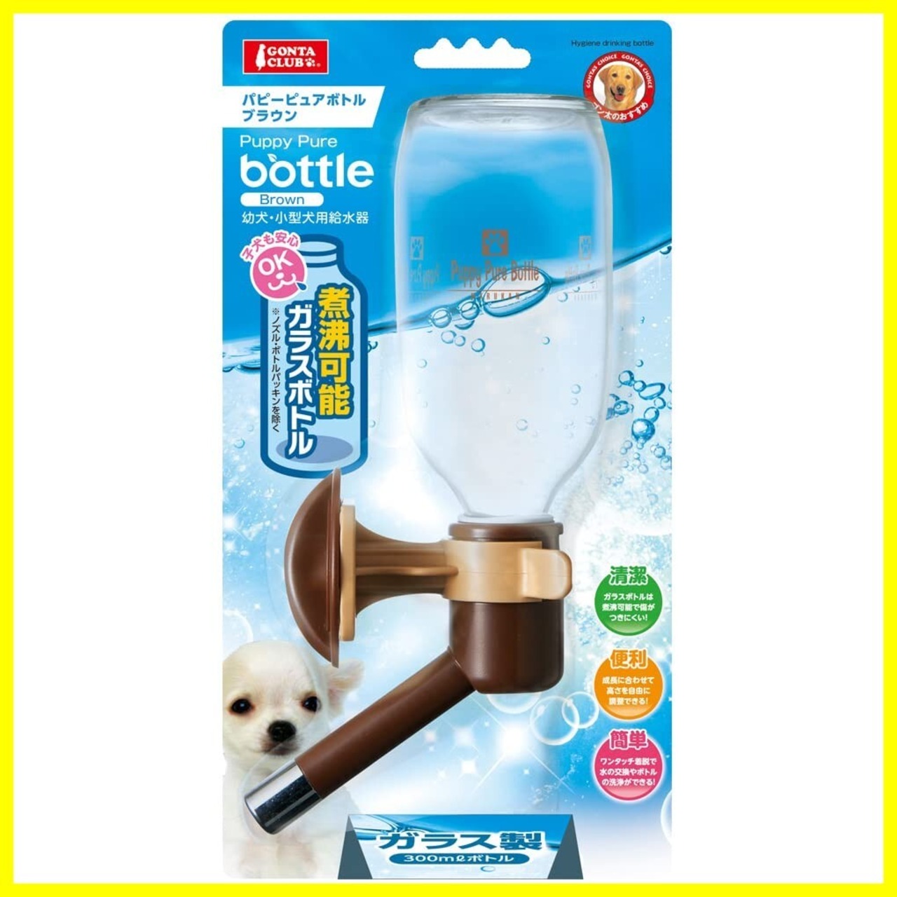 ガラスボトルは煮沸消毒可能で衛生的。特に幼犬におすすめ。