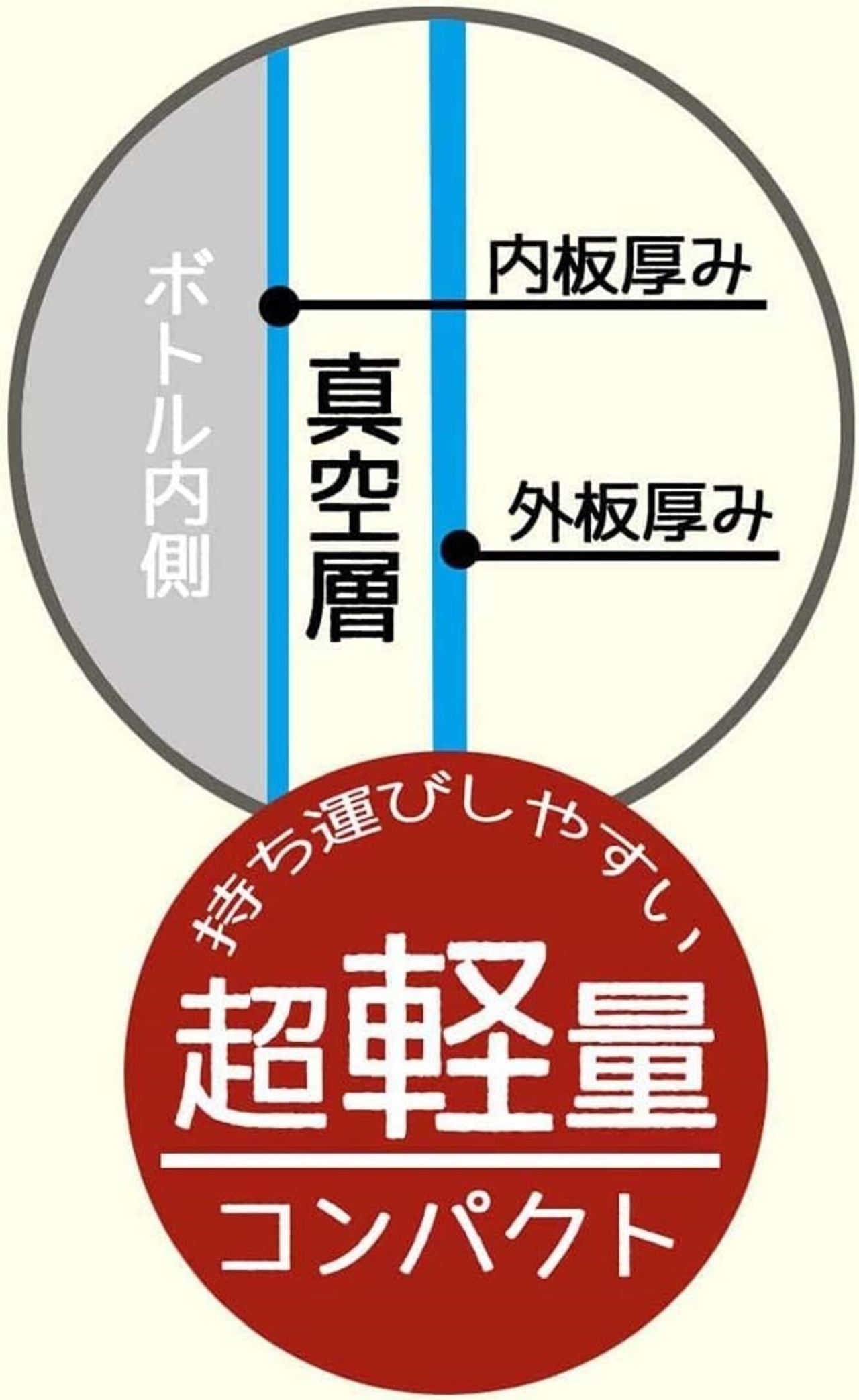 真空二重構造で保冷力UP、軽量コンパクトなステンレス製水筒