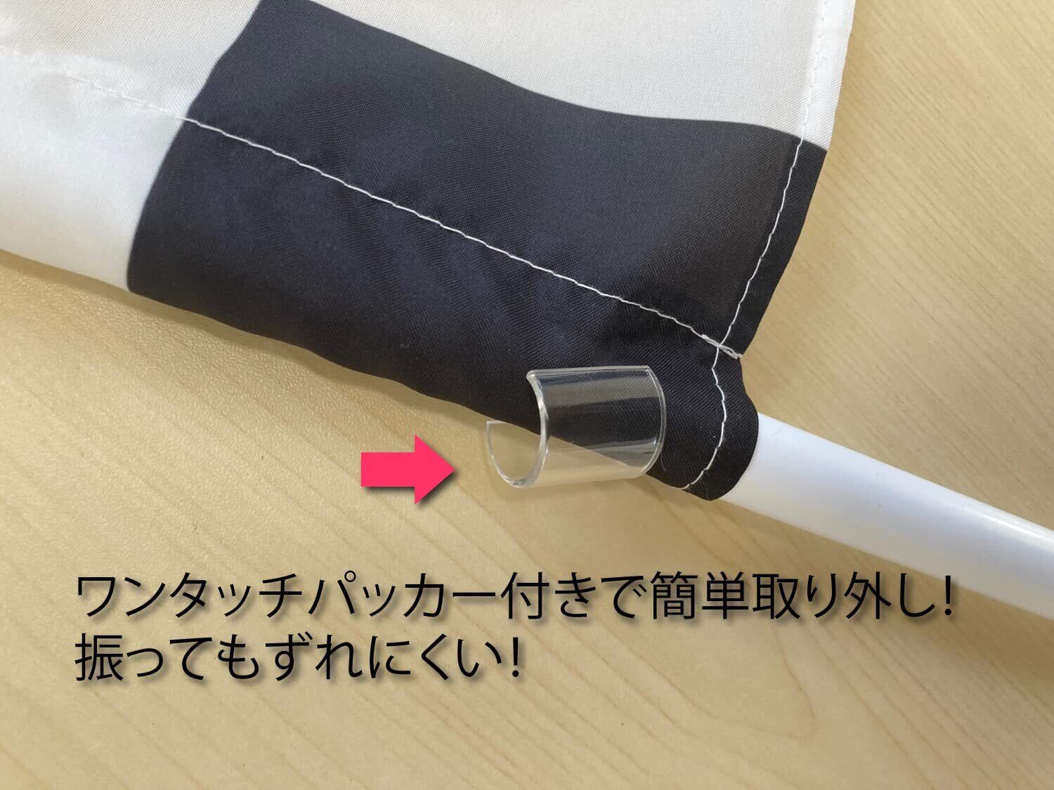 レースや各種競争、応援等に最適な手旗タイプのチェッカーフラッグです。生地は振りやすく軽量、濡れても乾きやすいポリエステル100%です。ほつれにくいよう周囲縫製しております。またパッカーで取り付けしておりますので取り外しも簡単 ポールは軽量で強度のある塩ビパイプにしっかりとした握り心地で振りやすいウレタン製グリップ付きです。安心の国産、フラッグ専門工場にて製作しております。