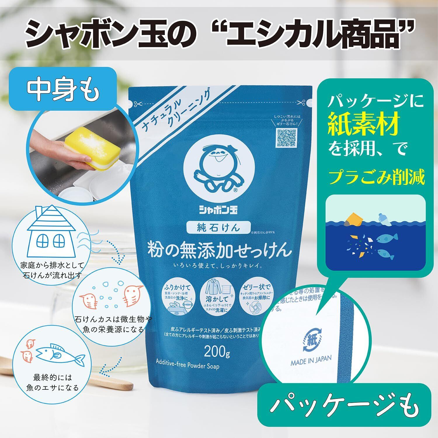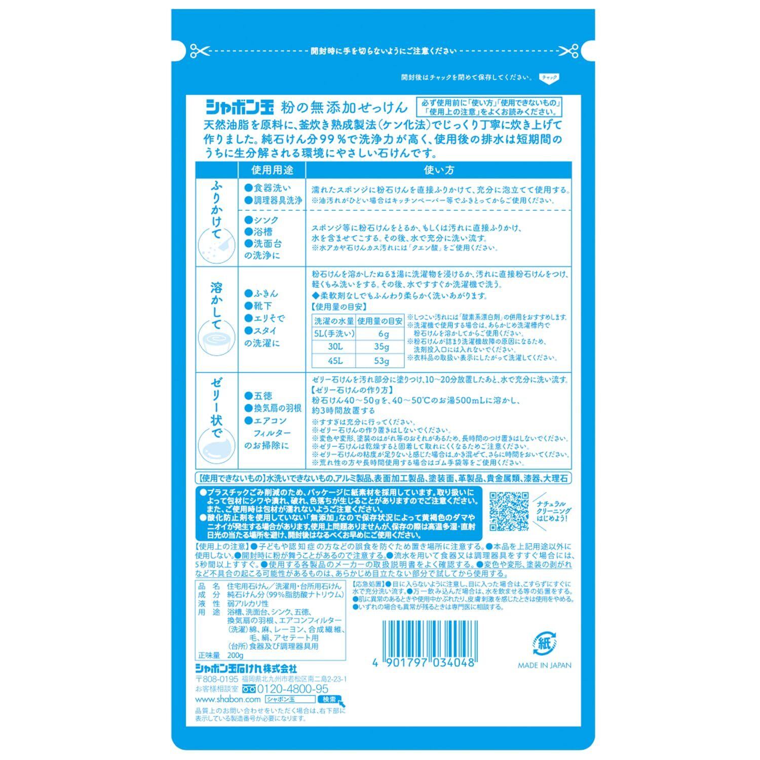 シャボン玉石けん 粉の無添加せっけん 200g