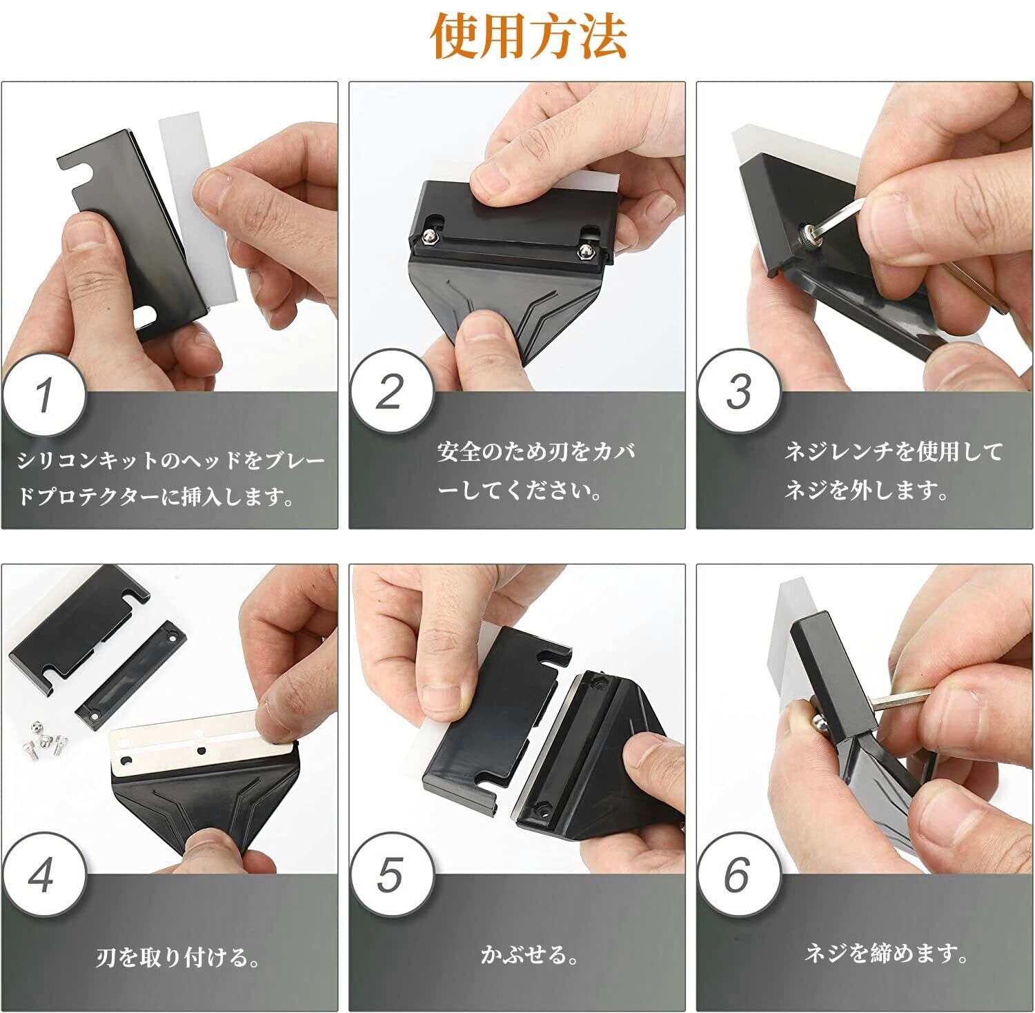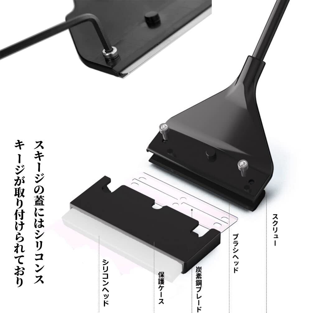 【パッケージ内容】水槽スクレーパー本体×1本、刃先カバー×1個、シリコンヘッドx1個、替え刃×10個。