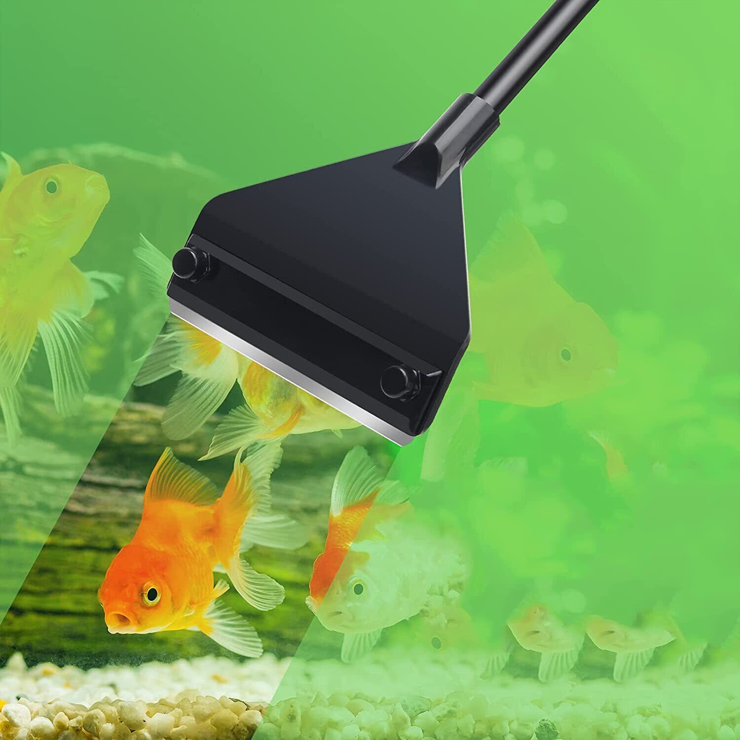【保護】交換用ブレードは10枚あり、両面1枚使用可能です。 幅広のスクレーパーヘッドにより、ガラス面のコケを効果的に洗浄できます。 刃の角が丸みを帯びているので、流し台の損傷を気にする必要がありません。また、シリコンチップが付属しており、アクリルなどのガラス製以外の水槽にも使用できます。サンドレベラーとしても使用可能です。