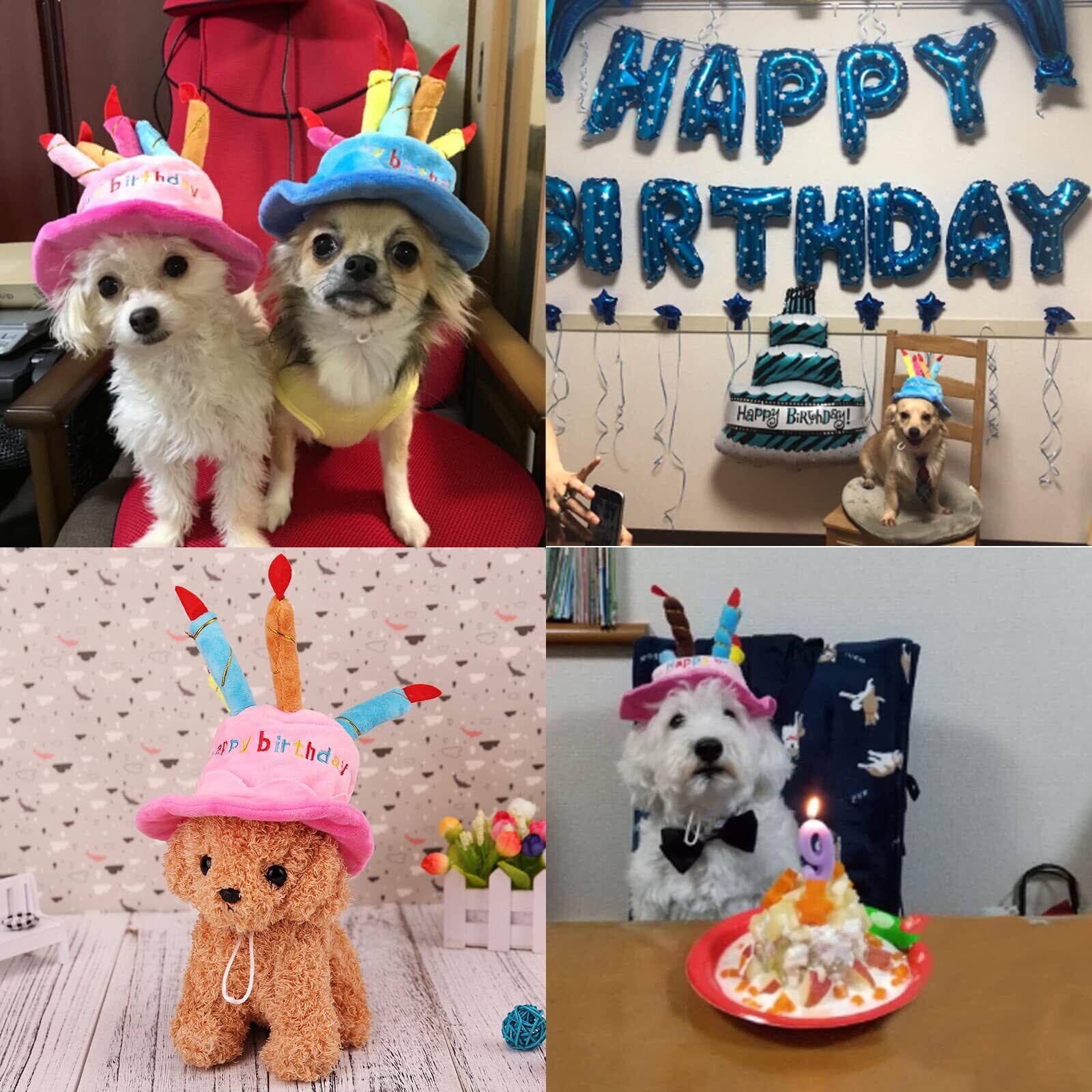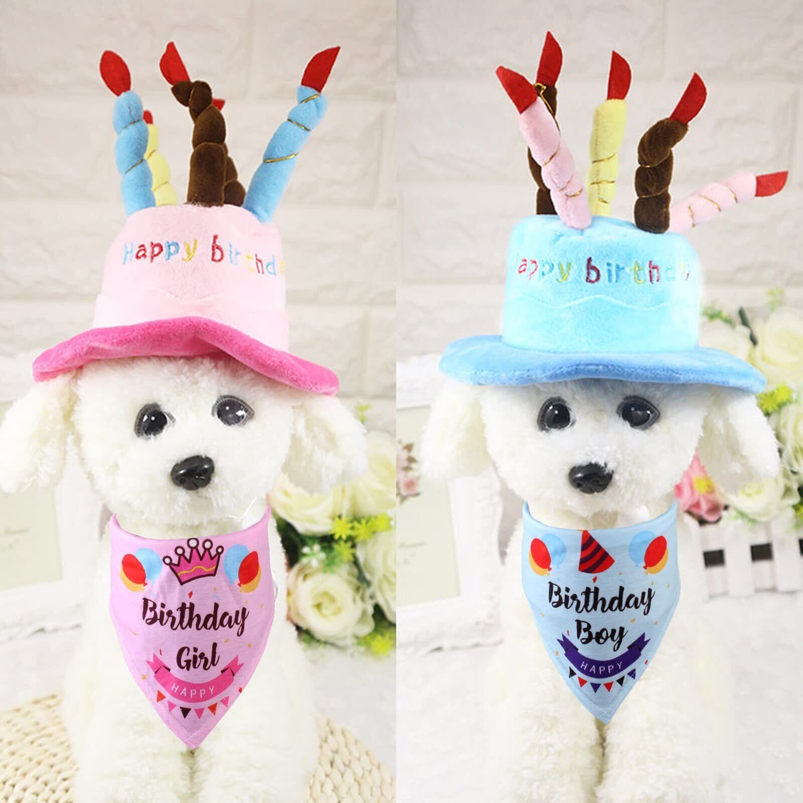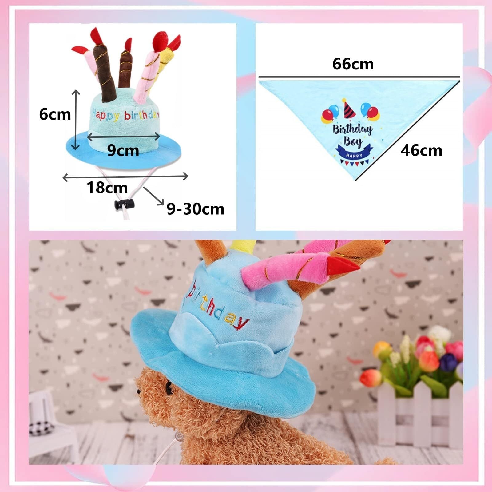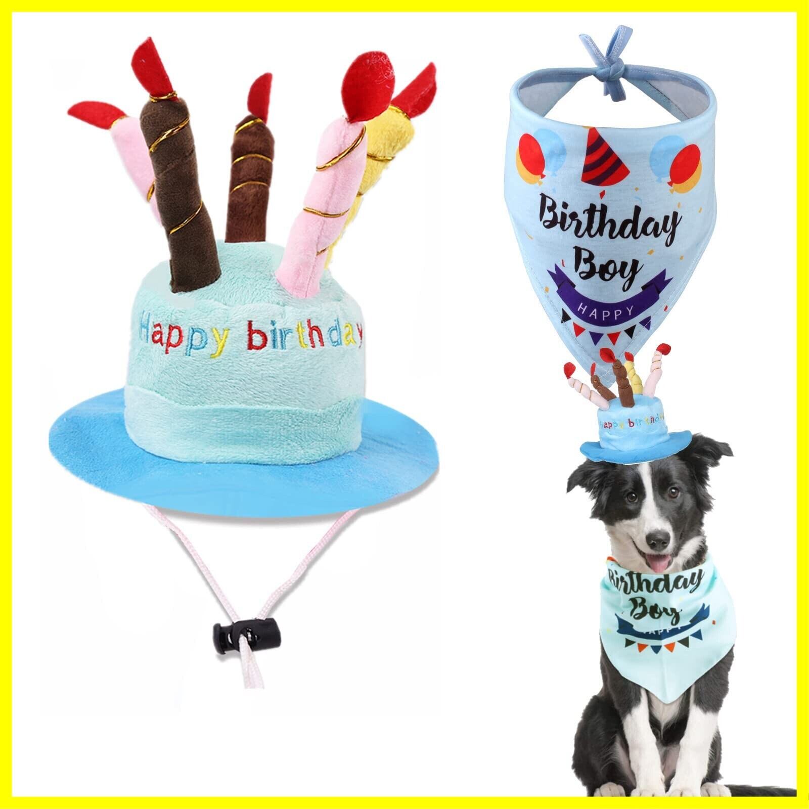 Kingsie 犬 誕生日帽子 バンダナ 2個セット 可愛い ろうそく ケーキ型ハット かぶりもの よだれかけ 写真撮影 バースデー お誕生日 パーティー 変身 コスプレ コスチューム ペット用品 (ブルー)
